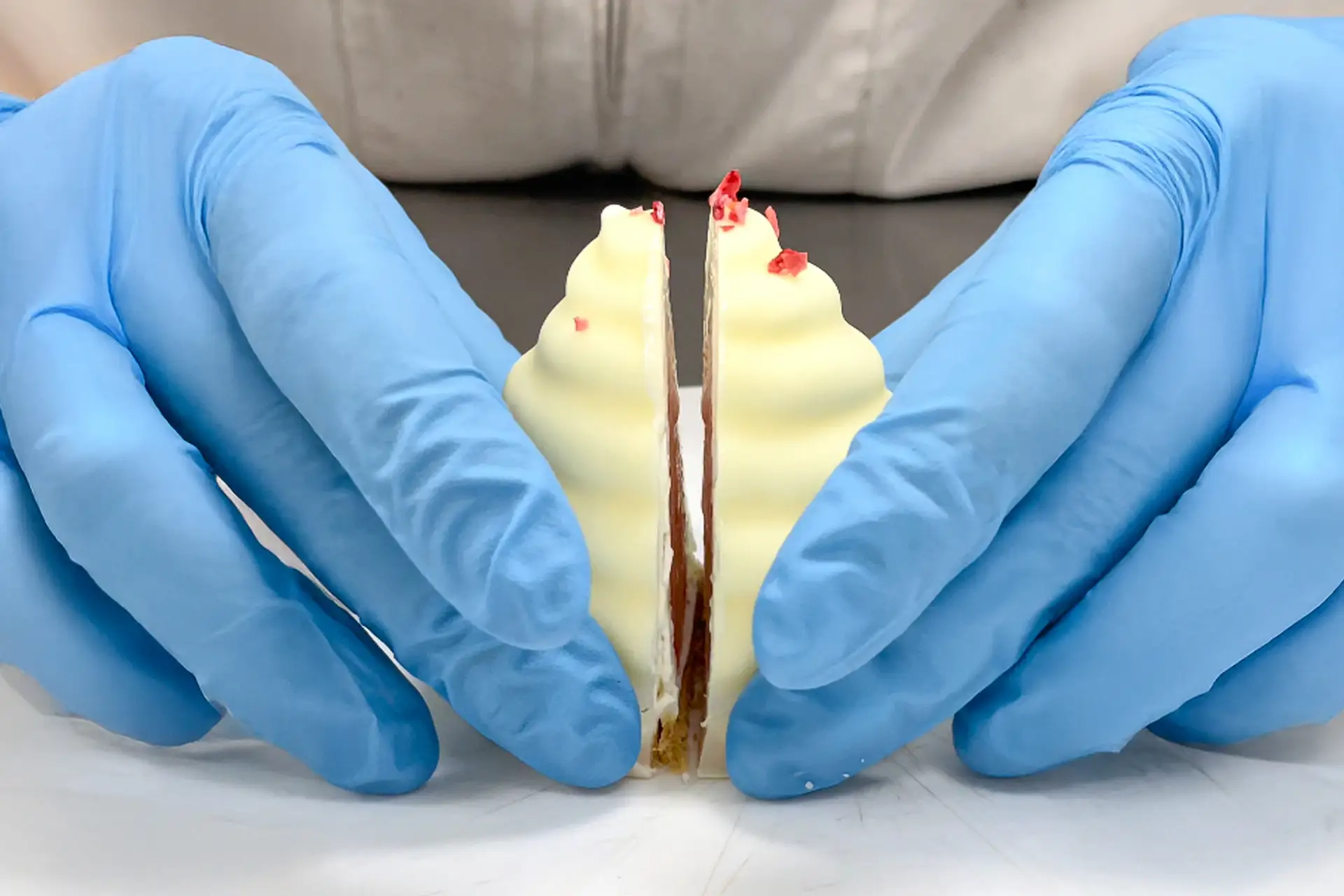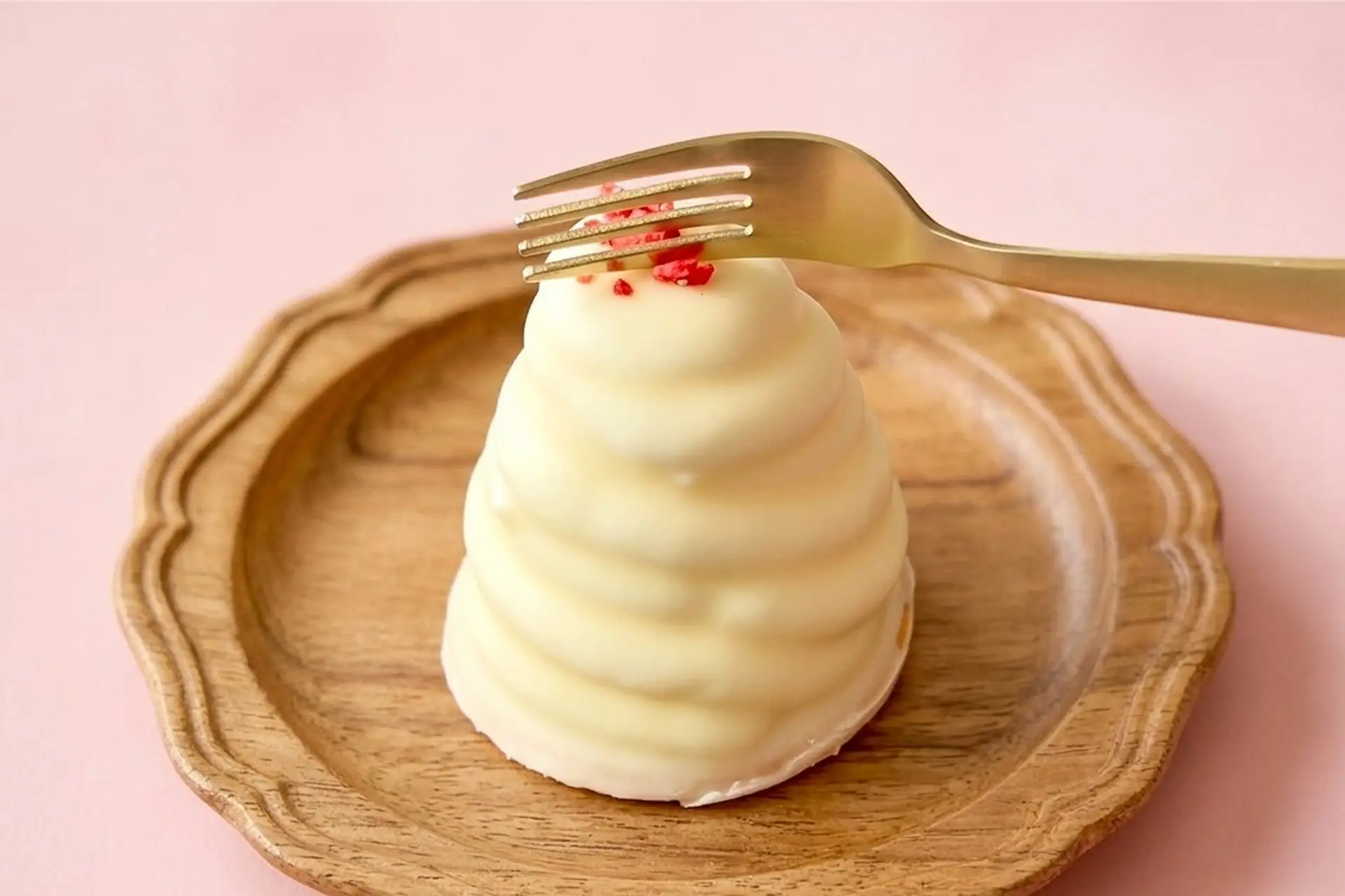 今回の「ホワイトシャンティ」は、外側のチョコレートをホワイトチョコレートで仕立てたホワイトデー限定仕様。外側をホワイトチョコにすることで、味わいはよりまろやかミルキーに。苺の甘酸っぱさを引き立てながら、深く濃密なコクが加わり、“ショートケーキ感”がさらにUP!