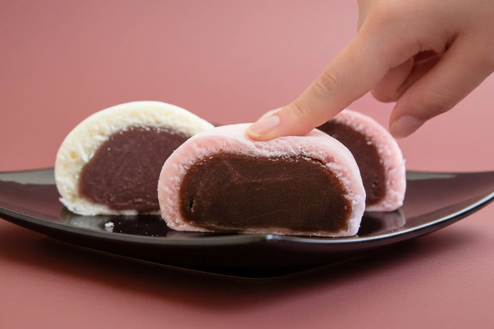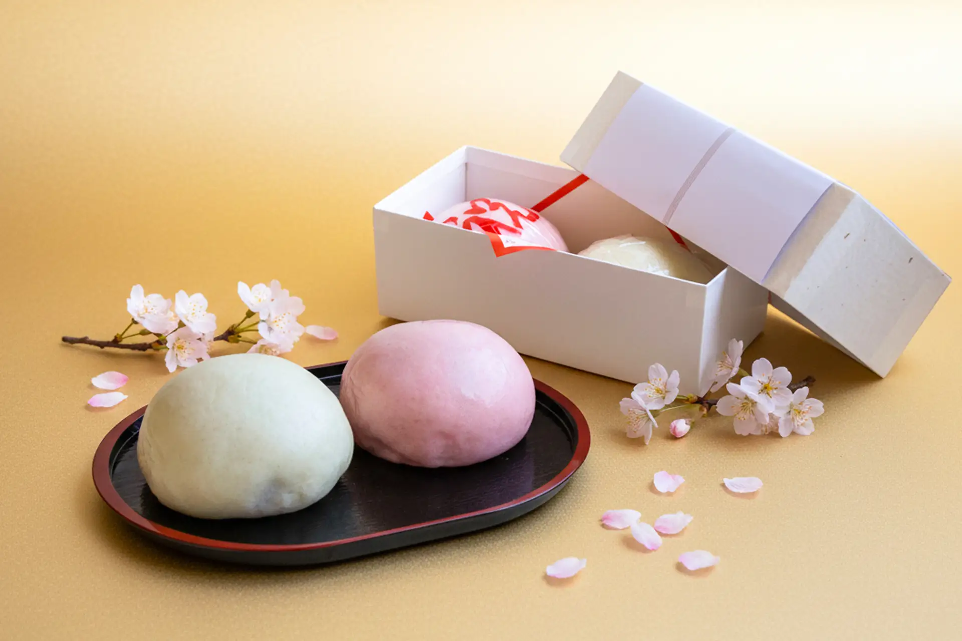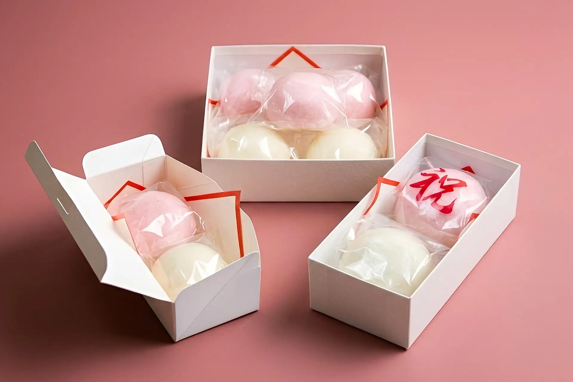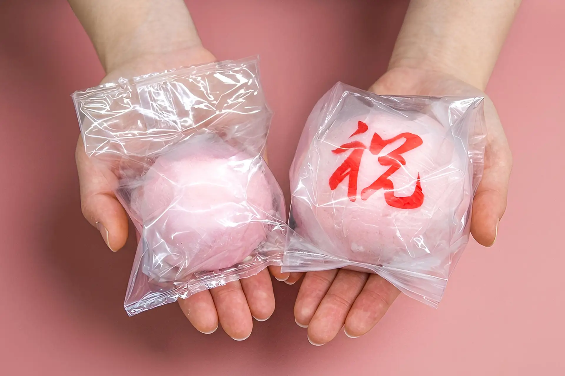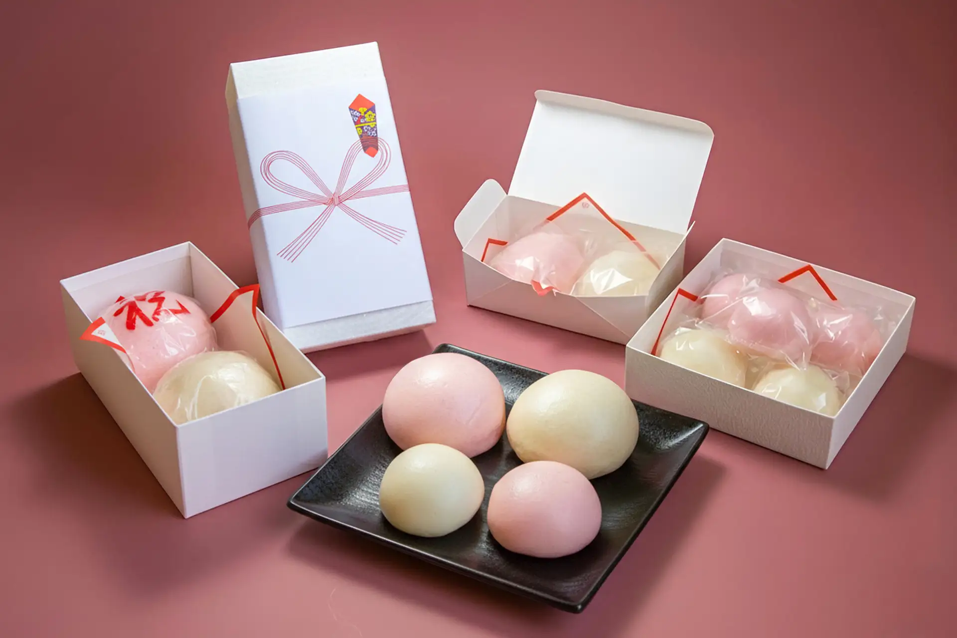 皮はふっくら福々・もっちもち!慶びに満ちた人生の節目にふさわしく、これからの人生にたくさんの福が舞い込むようにという、祈りを込めた祝菓です。