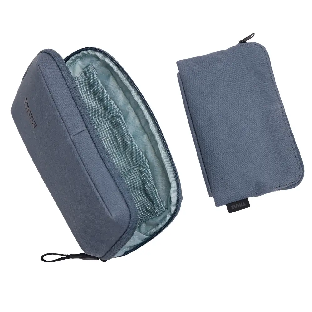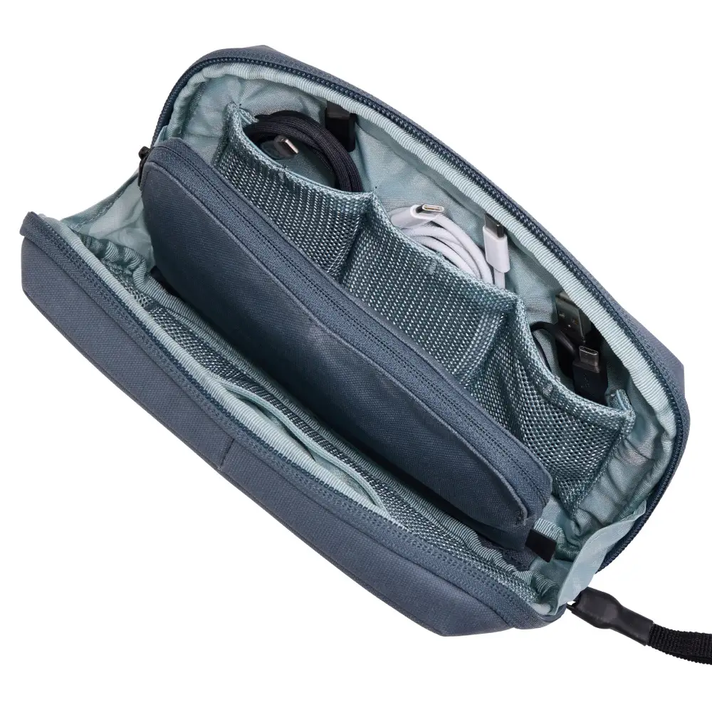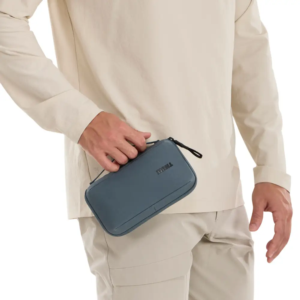 RFIDブロックポケット付きトラベルウォレットと電⼦機器オーガナイザーが融合した旅⾏⽤ポーチ。