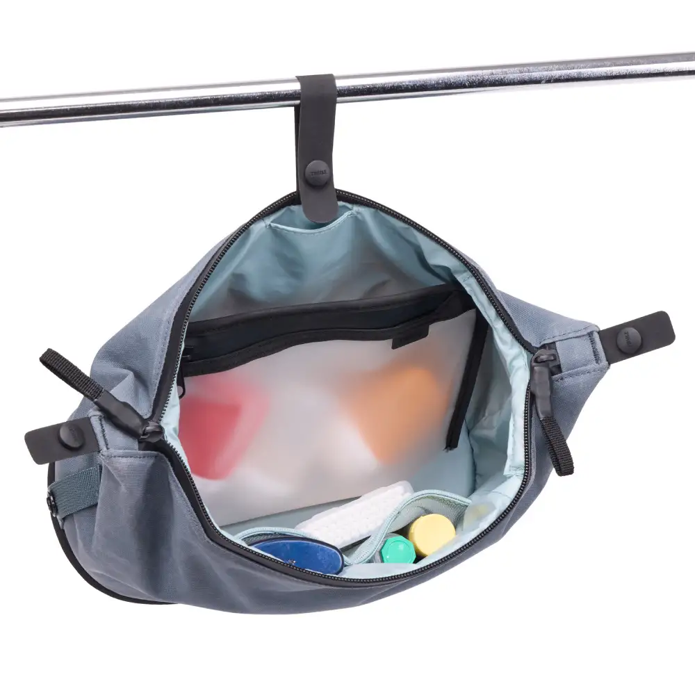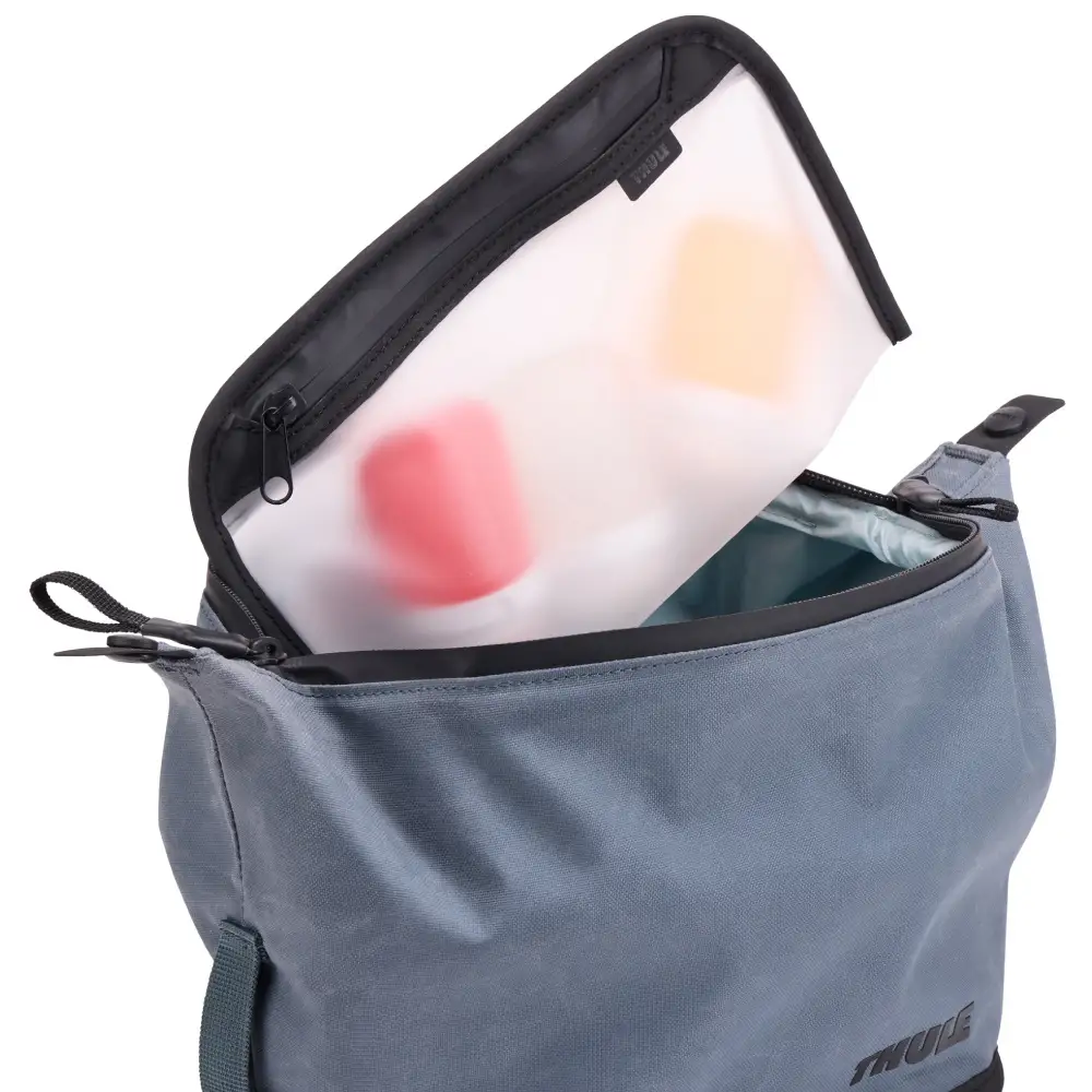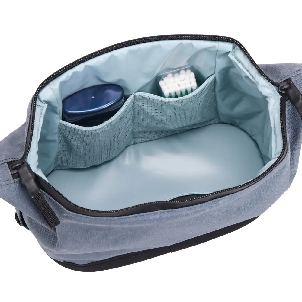 使い捨てビニール袋の使⽤を減らすTSAフレンドリーなポーチ付き⼤容量トイレタリーバッグ。
