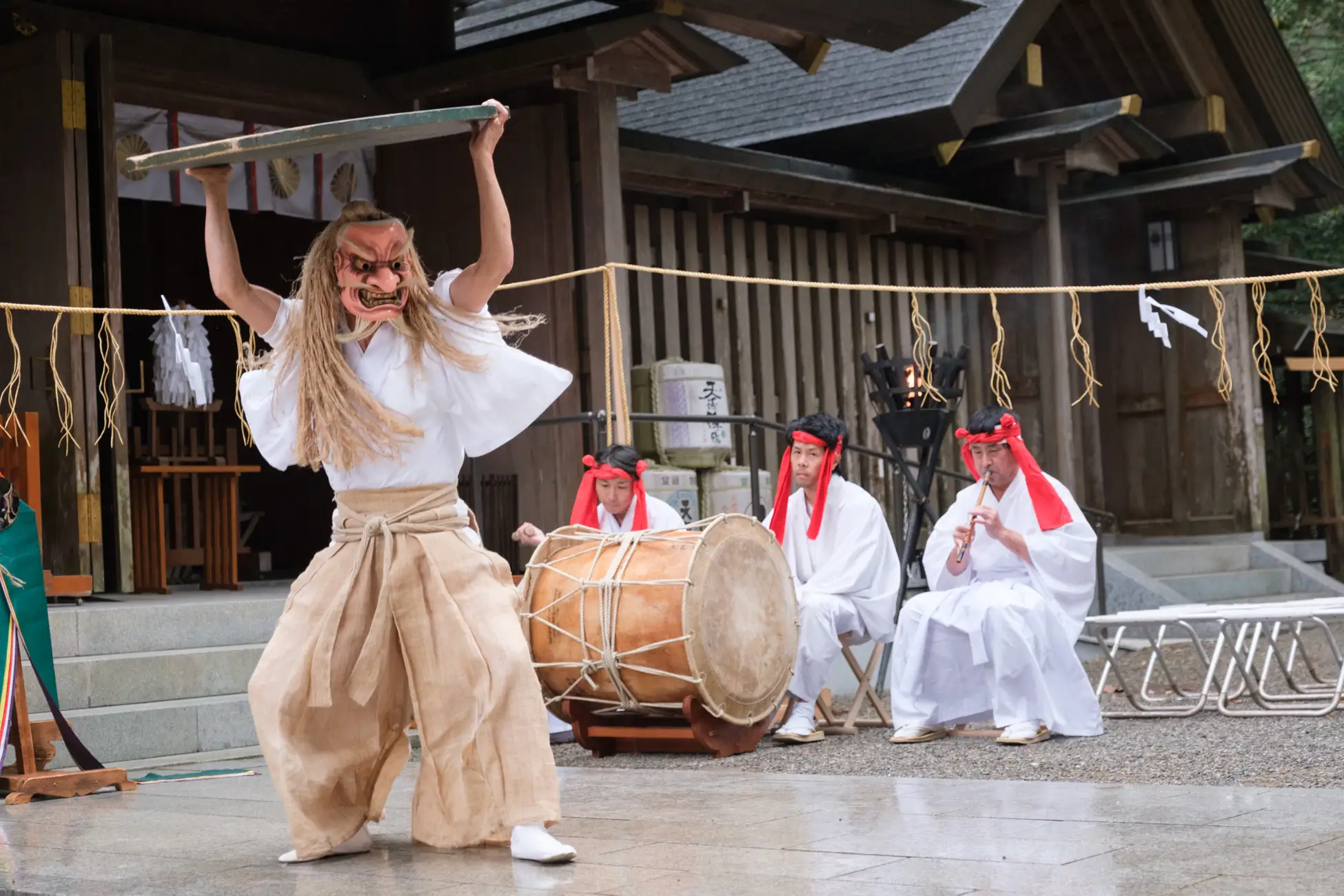 国指定無形文化財の天岩戸神楽や芸術家・文化継承者による恒例の奉納行事も開催