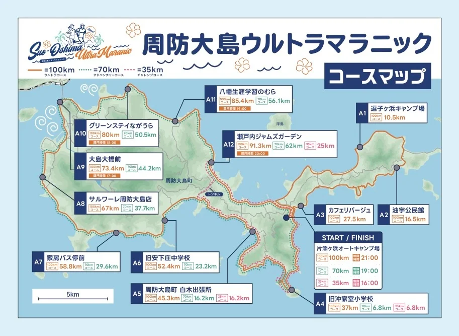 瀬戸内の“癒しの島”を舞台に、走って・食べて・つながる100kmの旅。70kmに加えて、新種目35kmが加わり、より参加しやすい大会へ進化!