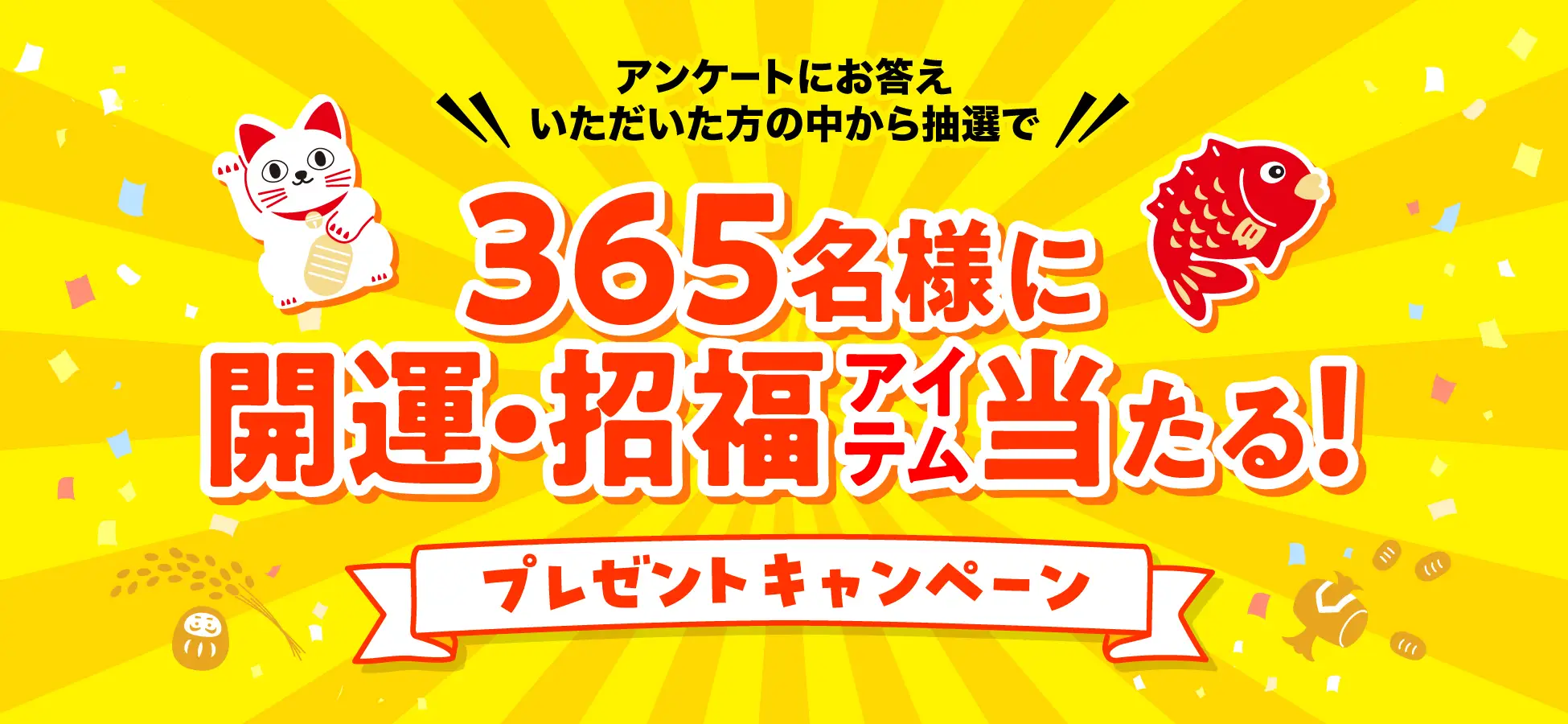 新日本カレンダーから販売中のカレンダーを購入し、アンケートにご回答いただいた方の中から抽選で365名様に、「開運・招福アイテム」をプレゼントするキャンペーンを実施中です。