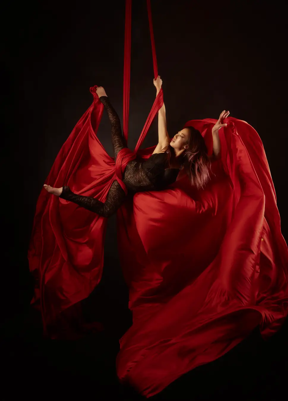再構築された遊郭のような妖しい世界の中で、多国籍のアーティストたちが着物を纏い、空中を舞い、絡み合い、弾ける。