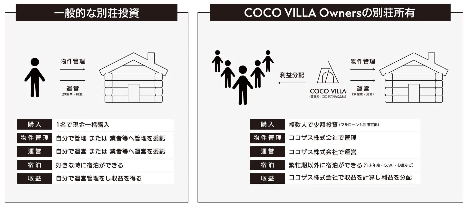 COCO VILLA Ownersは、手頃な価格で別荘所有ができる上、資産として収益も得られる新しい仕組みです(特許出願中)