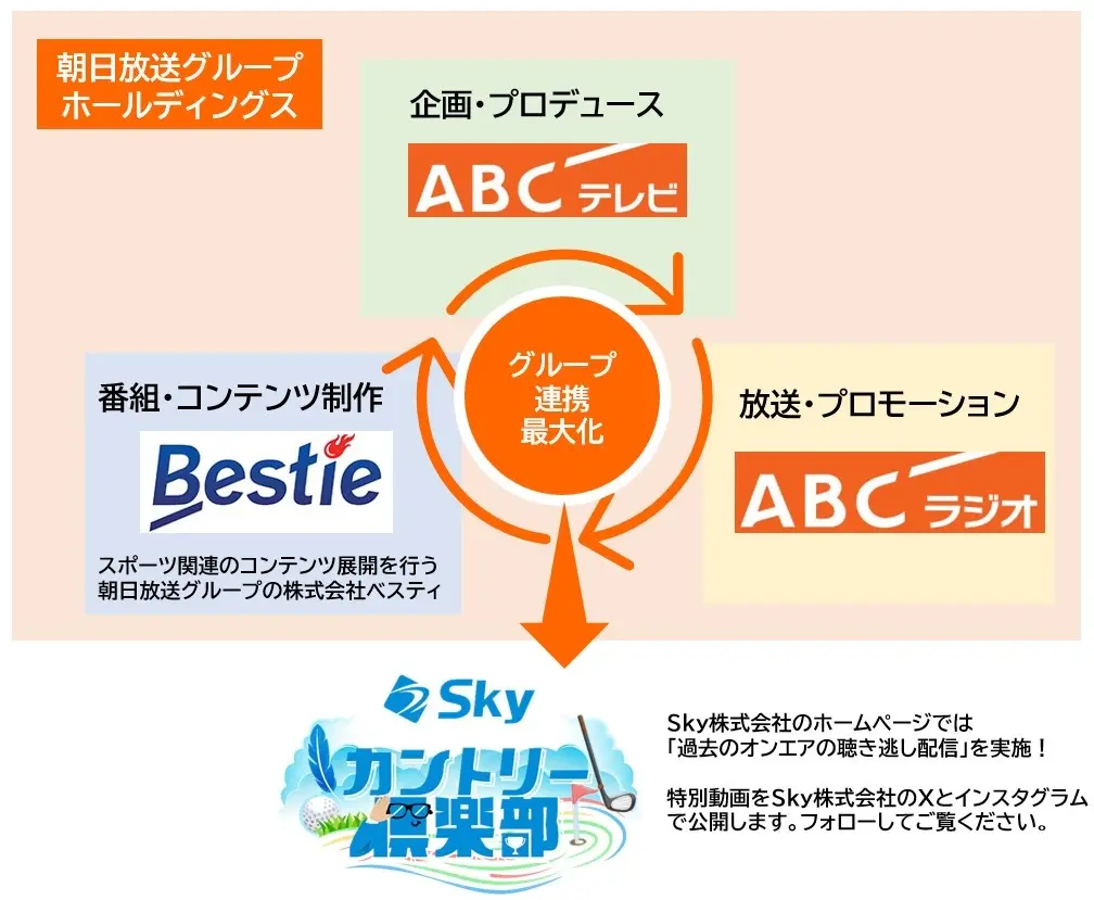 朝日放送グループホールディングス株式会社(本社:大阪市、代表取締役社長:西出将之)のグループ会社、朝日放送テレビ株式会社(本社:大阪市、代表取締役社長:今村俊昭)、スポーツコンテンツ展開を行う株式会社ベスティ(本社:大阪市、代表取締役社長:江﨑仁祐)、朝日放送ラジオ株式会社(本社:大阪市、代表取締役社長:髙橋靖史)の3社がタッグを組み、Sky株式会社所属の女子プロゴルファーの魅力とゴルフの楽しさをたっぷりとお伝えします。
