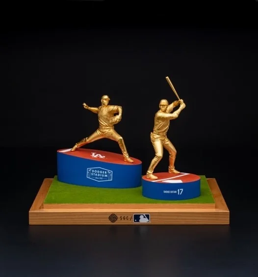 さらに、純金製フィギュアも販売いたします。種類は「K24 バッター大谷翔平」「K24 ピッチャー大谷翔平」「K24 二刀流大谷翔平」の3種あり、各1/10スケールと1/20スケールをご用意しております。