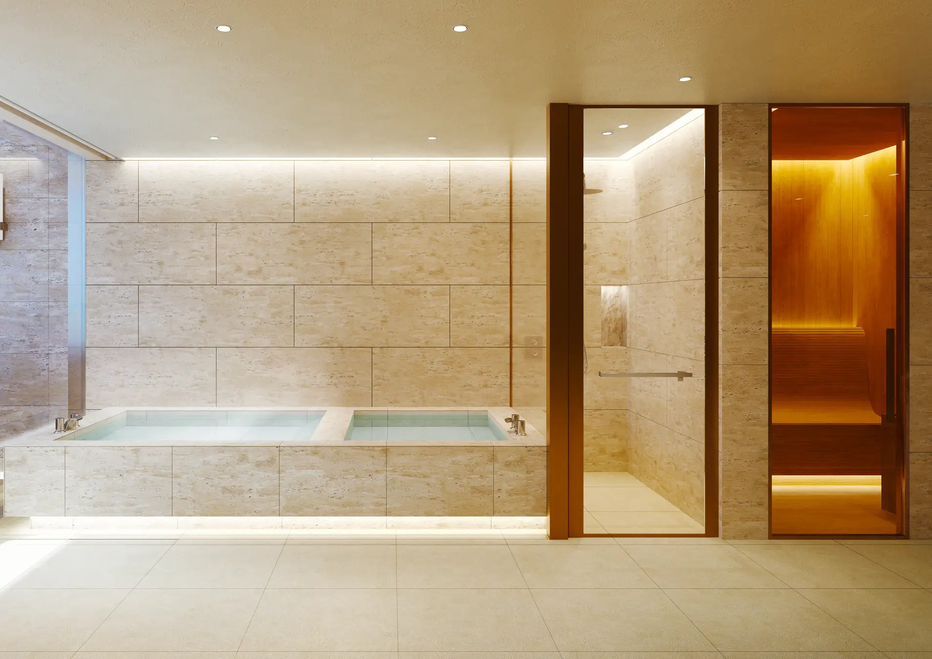 プライベートサウナと水風呂を備えた、完全なプライベートスパ空間。