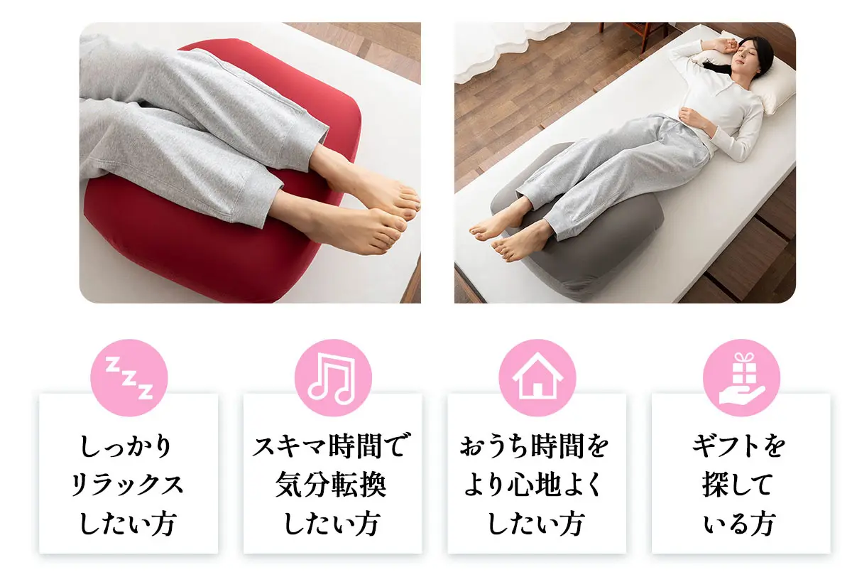 置くだけ・乗せるだけでケアできる続けやすさ。『ふくらはぎを支えるまくら』は毎日のくつろぎ時間に、心地よく寄り添います。