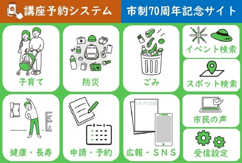 <厚木市公式LINEでできること>