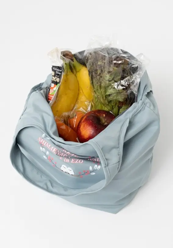 ゴムでコンパクトにたためる仕様で、かさばらず持ち運びもラクラク。ファスナー付きで中身がこぼれにくく、本体内側には保冷剤用のメッシュポケットを備え、しっかりと保冷できます。個人のお買い物用としてはもちろん、スーパーやカフェのイベント景品、オリジナルノベルティにもおすすめのアイテムです。