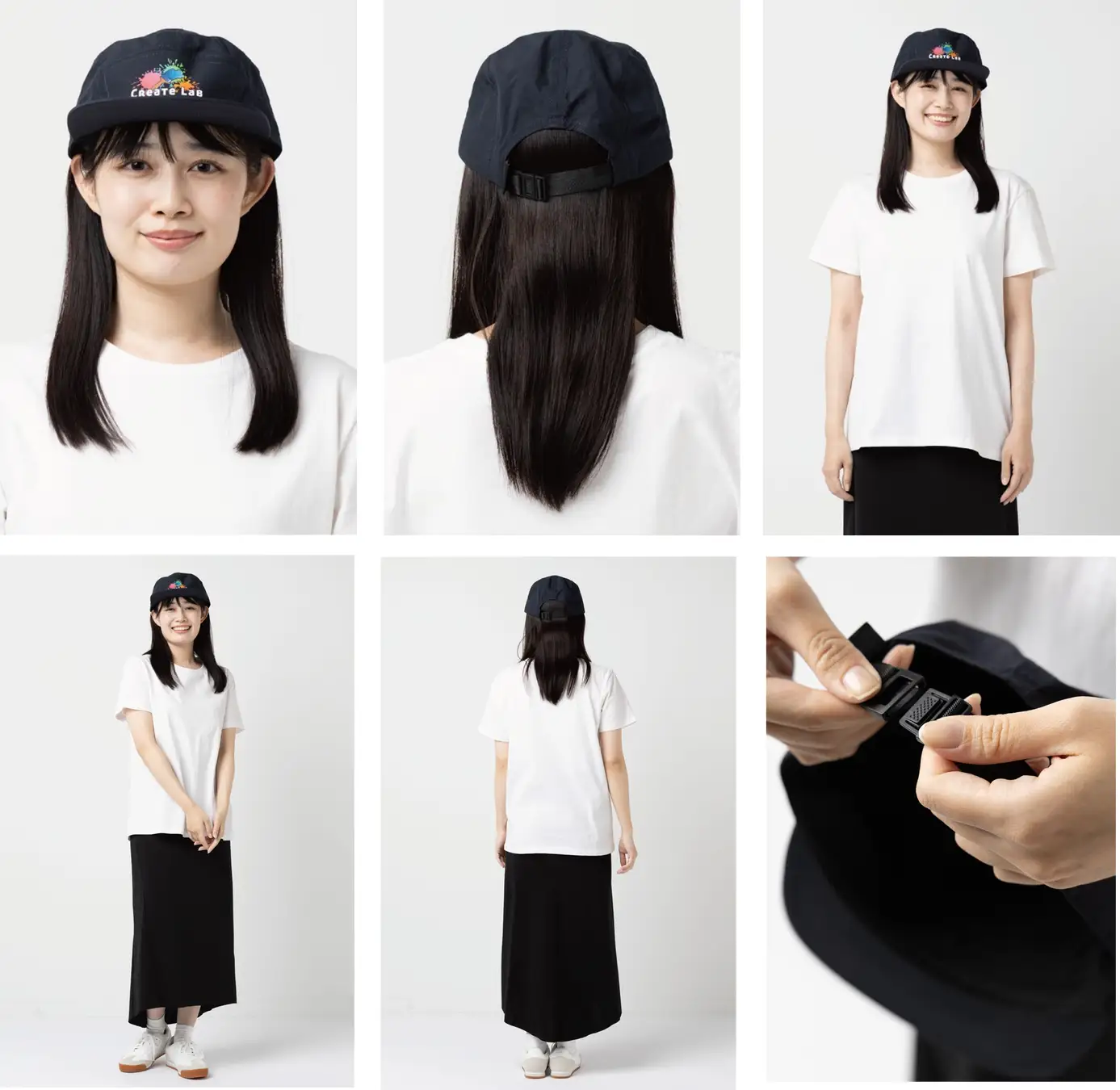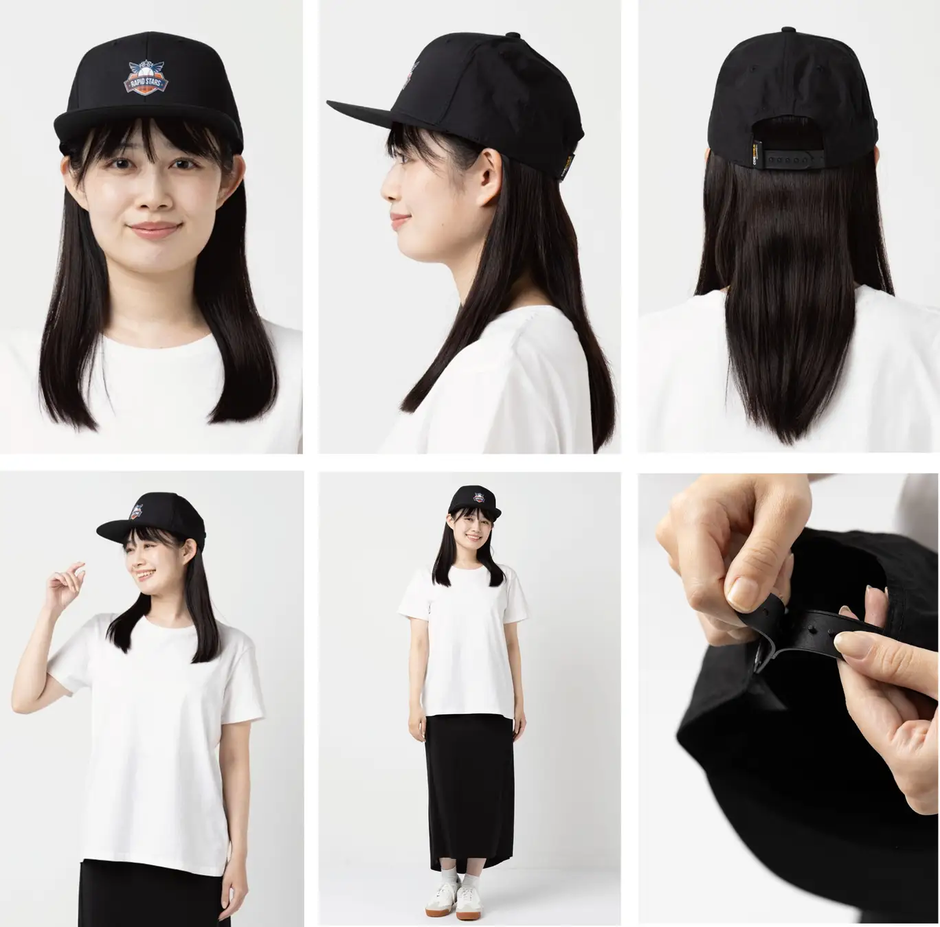 前パネルはつなぎ目のない仕様で、ロゴやデザインをきれいに表現可能。後部のアジャスターでサイズ調整ができ、性別や用途を問わずお使いいただけます。
