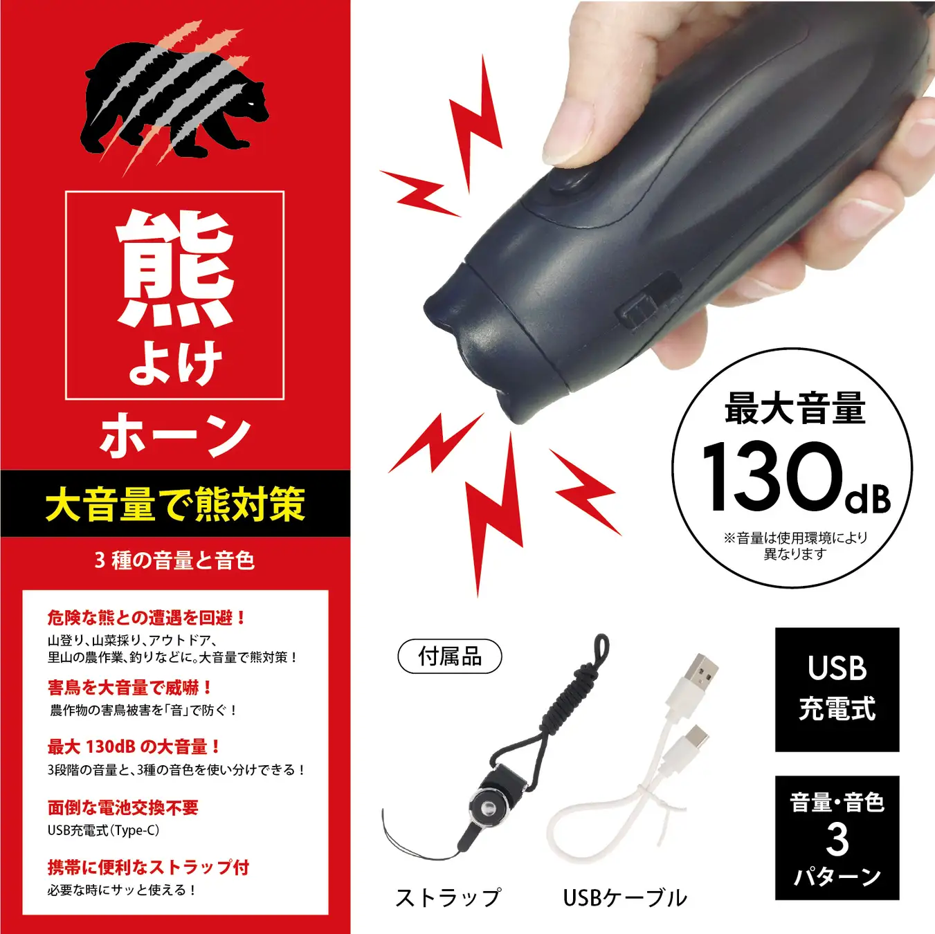 ホーンや真鍮鈴は大音量を発するため、市街地や公共の場での不必要な使用は避け、本来の目的(獣害対策)に沿ってご使用ください。