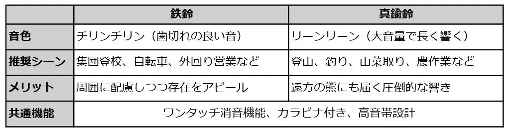 出没エリアが拡大する今、どちらか一方ではなく、状況に応じた備えを持つことが重要です。「通学や市街地での移動には鉄鈴」「農作業や山間部での活動には真鍮鈴」といったように、それぞれの活動場所に合わせた種類を使い分ける選択肢をご提案します。さらに、万が一の遭遇に備えて「熊よけスプレー」を携帯するなど、環境や行動に合わせた多角的な準備を推奨しています。
