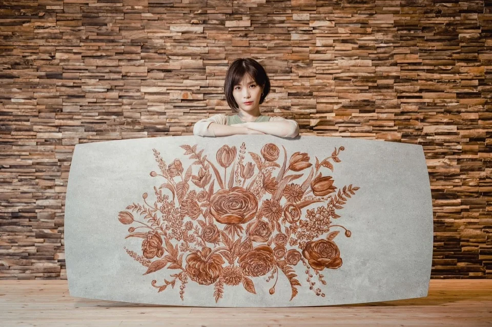 作品によっては制作過程で生まれる余剰チョコレートや試作用の材料を再活用しながら、濃淡だけで人物や花、物語を描く独自の技法を確立。国内外のイベントでライブペインティングを行い、繊細な筆致と立体感ある表現が評価されている。