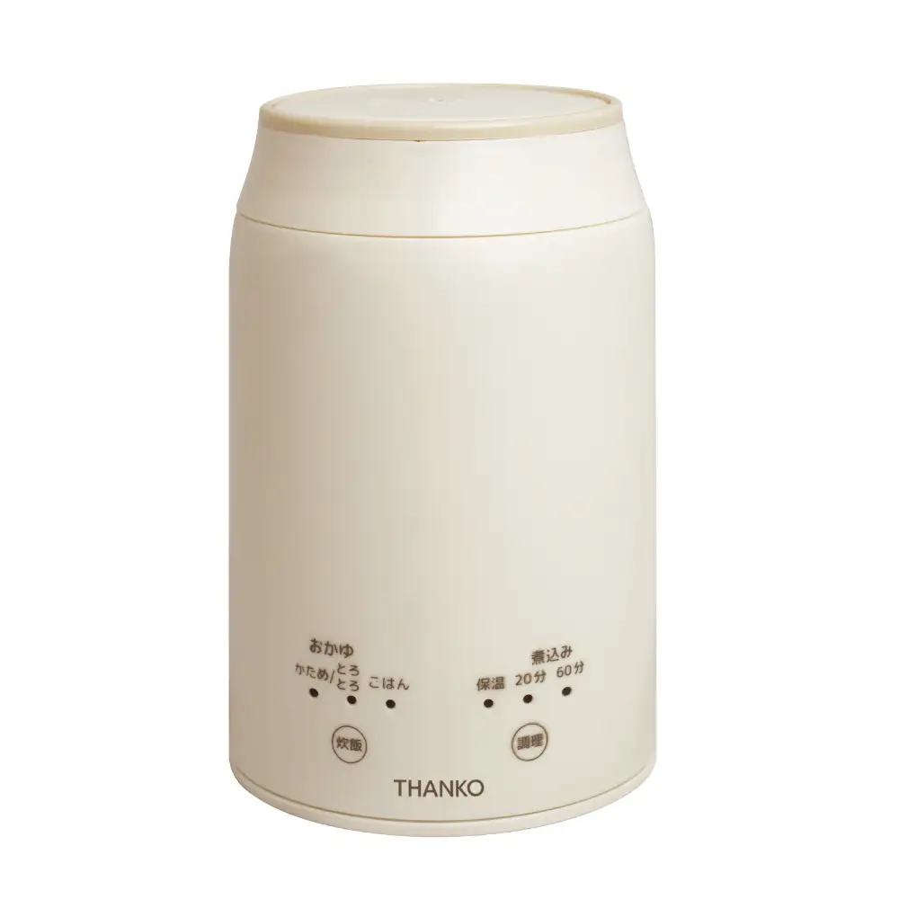 まるでスープジャーのような見た目ですが、実際はヒーターを内蔵し、コンセントに繋いでグツグツと加熱調理ができる「持ち運べる炊飯器」そのもの。