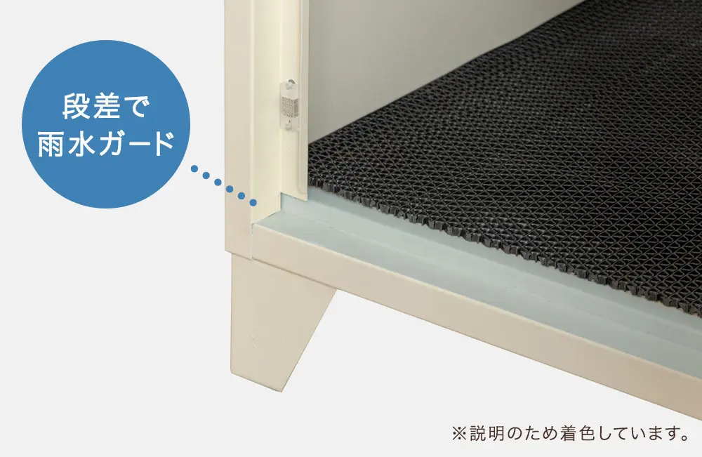 本製品は、扉の内側に段差を設けることで隙間から雨水が入りにくい防水構造としています。