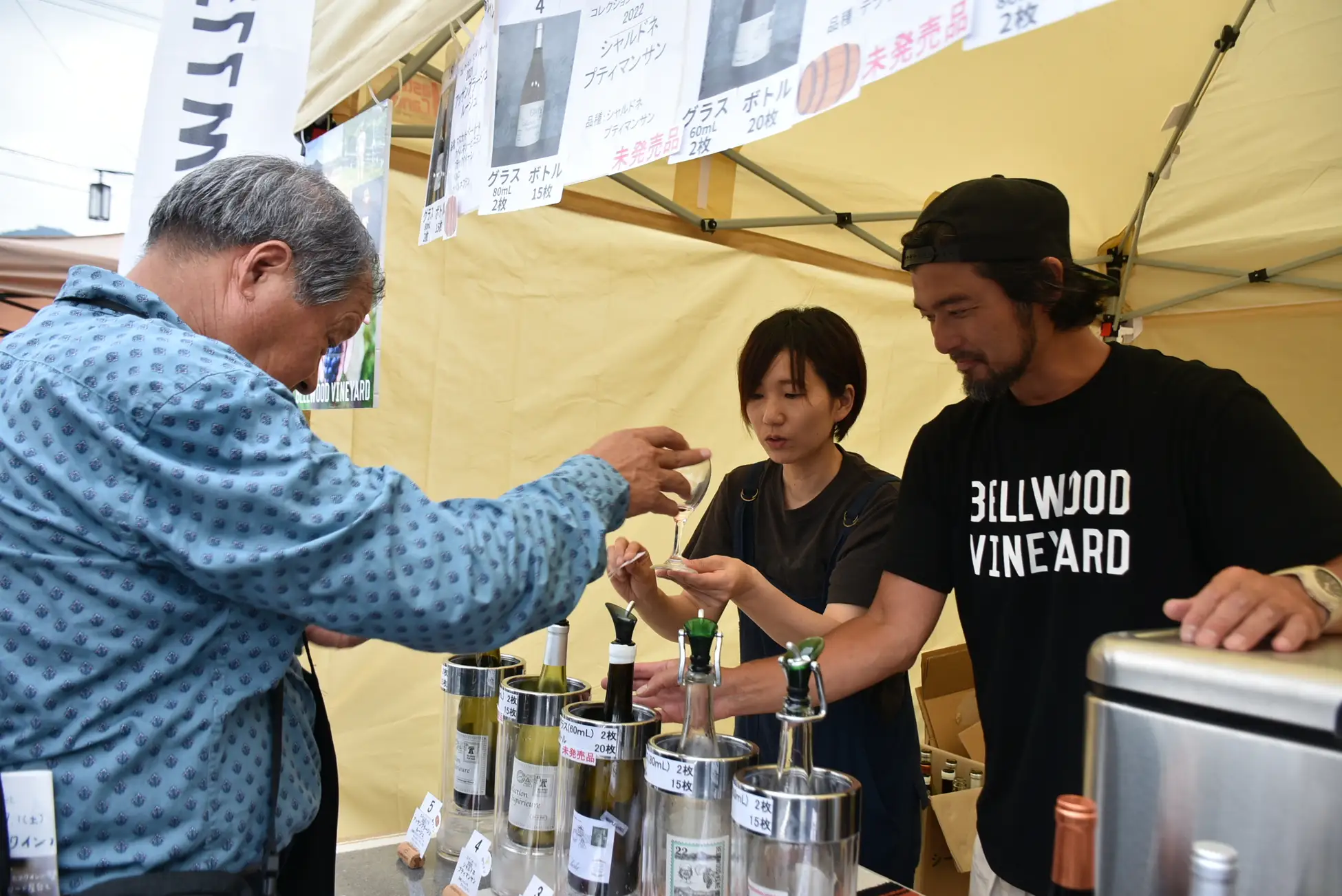 会場では、生産者自らがワインを注ぎ、ブドウの個性や醸造のこだわりを直接聞くことができます。