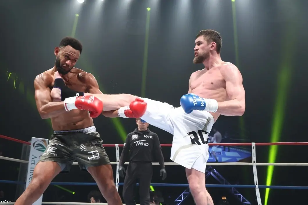 1R、コズロフは冷静な立ち上がりからジャブとカーフキックで距離を支配し、左フックでダウンを奪取。以降も無理にフィニッシュを狙わず、ボディ攻撃を織り交ぜながら着実にポイントを重ねていきます。