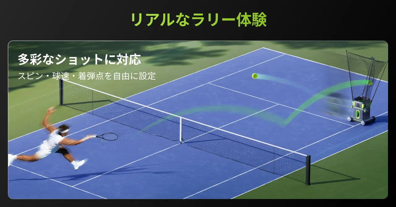 AIと4Kビジョンが弾道を予測し、最高秒速5mでコートを駆け巡る。これまでにない「本物のラリー体験」を20%OFFの特別価格で提供。