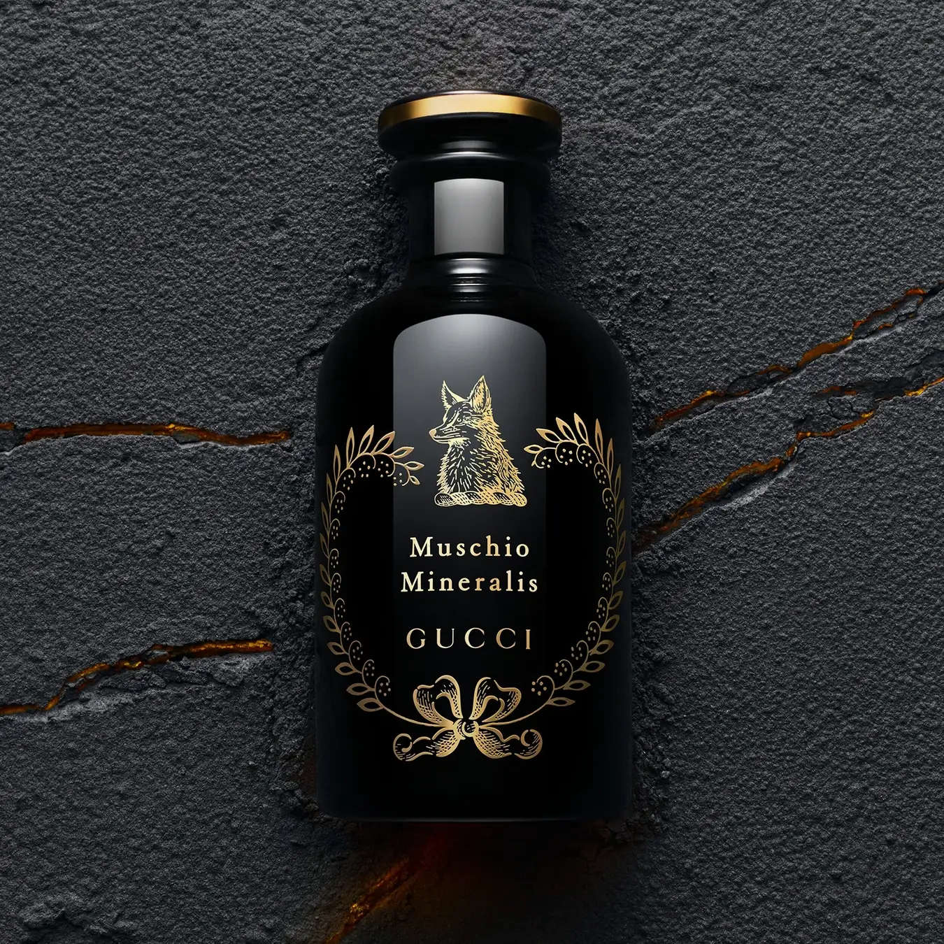 調香師のマティルデ・ビジャウイとジュリー・マッセによるテクニカルな精緻さと芸術性が融合したムスキー アンバリーの香りは、「Earth(土)」のプロセスで誕生。ブラックボトルには、直感とミステリアスさを象徴するキツネのモチーフがあしらわれています。