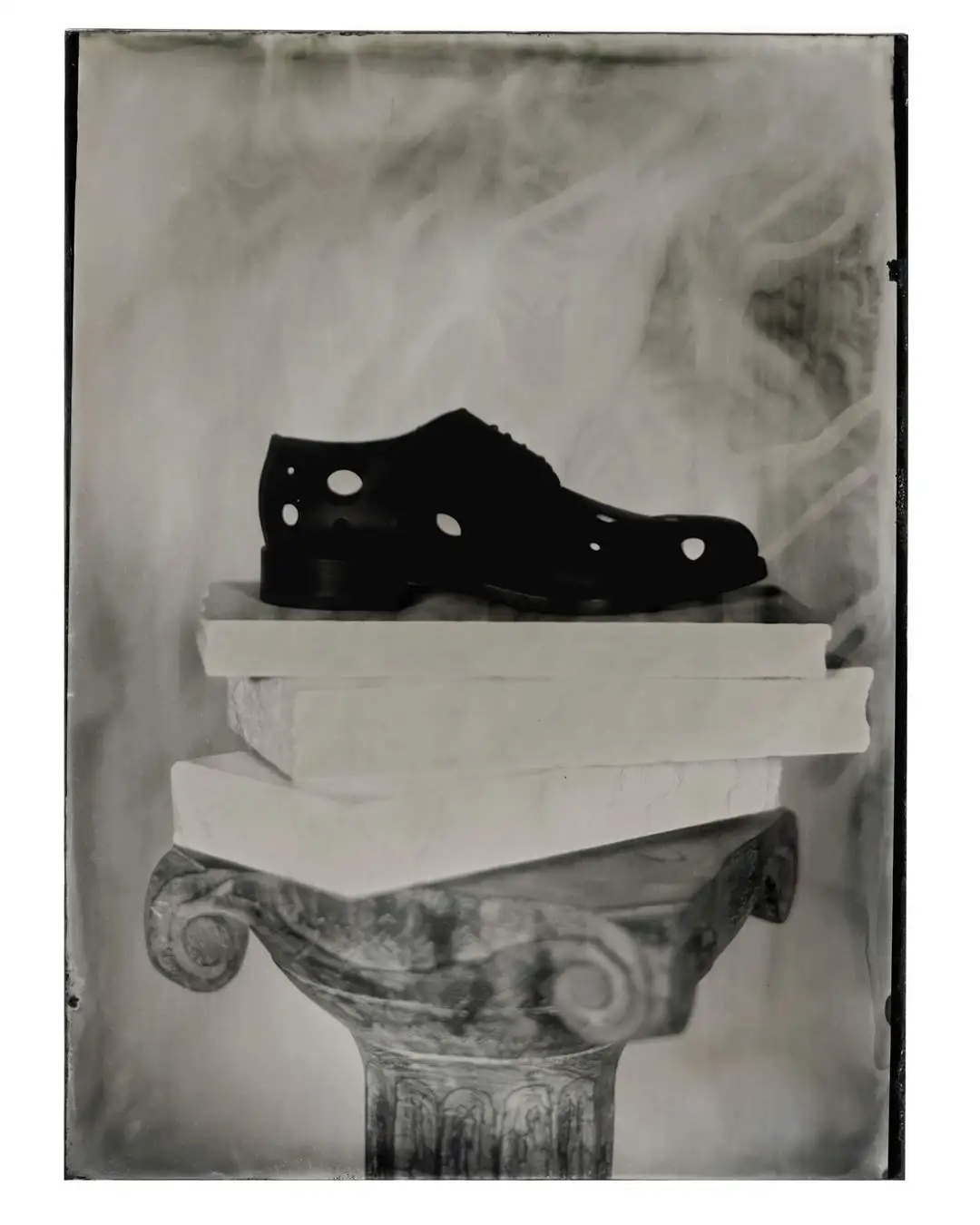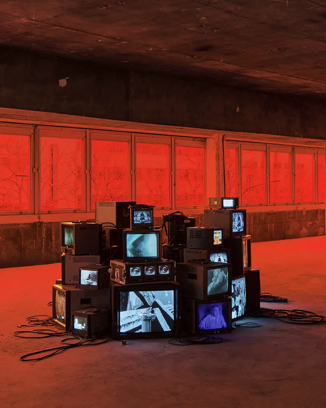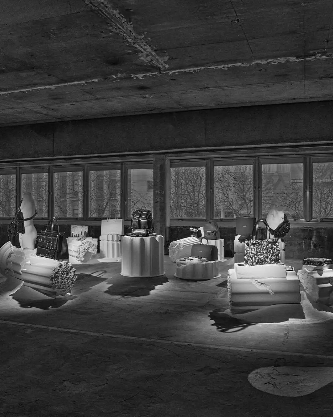 コレクション展示を超え、エキシビションはイメージと歴史への考察へと広がります。ヴィンテージ・テレビを用いた360度の映像インスタレーションでは、人類の歴史を形作ってきた異なる時代の断片が交差します。重大な出来事から日常の一瞬までを捉えた、過去と現在のフレームによって、イメージがどのように繰り返し共有され、時間をかけて人々の間に共通の記憶として定着していくのかを浮き彫りにします。この考察は、世代を超えて受け継がれてきた知とクラフツマンシップを想起させる「折れた柱の上で涙する聖母」の寓意に着想を得て、アンティークの柱の上に配されたセレクトスタイルへと引き継がれていきます。