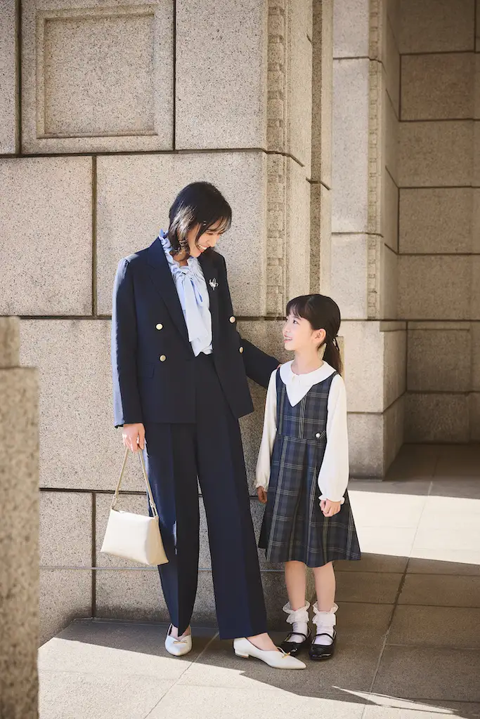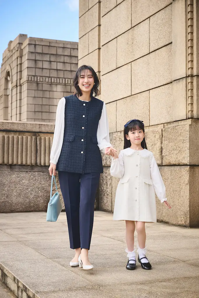 トップスとの組み合わせ次第でさまざまな着こなしを楽しめるツイードジレや、ペプラムデザインでコーディネイトがクラスアップするジャンパースカートなどの着まわし力の高いアイテムをラインアップ。さらに、子どもと一緒に迎える大切な日だからこそ、華やかさだけでなく動きやすさや汚れ対策などのケア面にも配慮し、360度ストレッチの洗えるセットアップや、抗菌防臭機能付きのジャケットなどイージーケアなアイテムも揃えました。