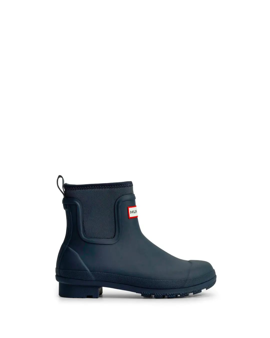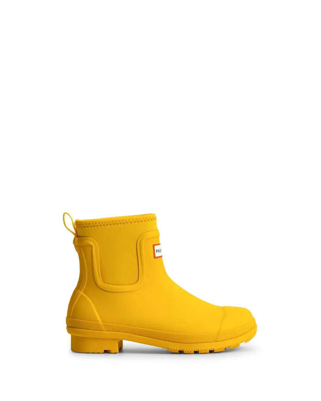 着脱に便利なヒールのプルタブ、アウトソール前方とヒールに凹凸構造を施した一体型ラバーアウトソール、伝統のマスタッシュデザインのトゥキャップ、HUNTER レッドボックスロゴ、アウトソールのHUNTERレッドスケールドットを採用