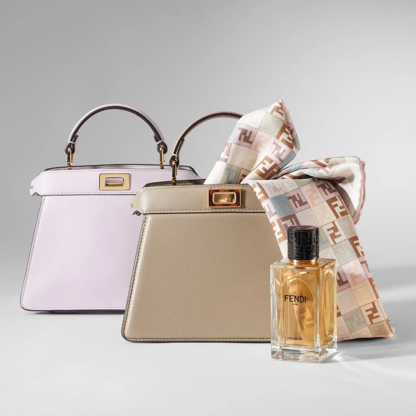 女性向けには、フェンディのアイコンバッグ「ピーカブー(Peekaboo)」が豊富なサイズとカラーパレットでラインナップします。クラシックなダブから、2026年春夏コレクションを彩る爽やかなアネモネまで、どのようなシーンでもエレガントな佇まいが際立つ「ピーカブー」は、大切な人へのギフトに最適です。シルクスカーフやチャームを飾ることでオリジナリティを加え、フレグランスを纏うことでロマンチックなムードを提供します。