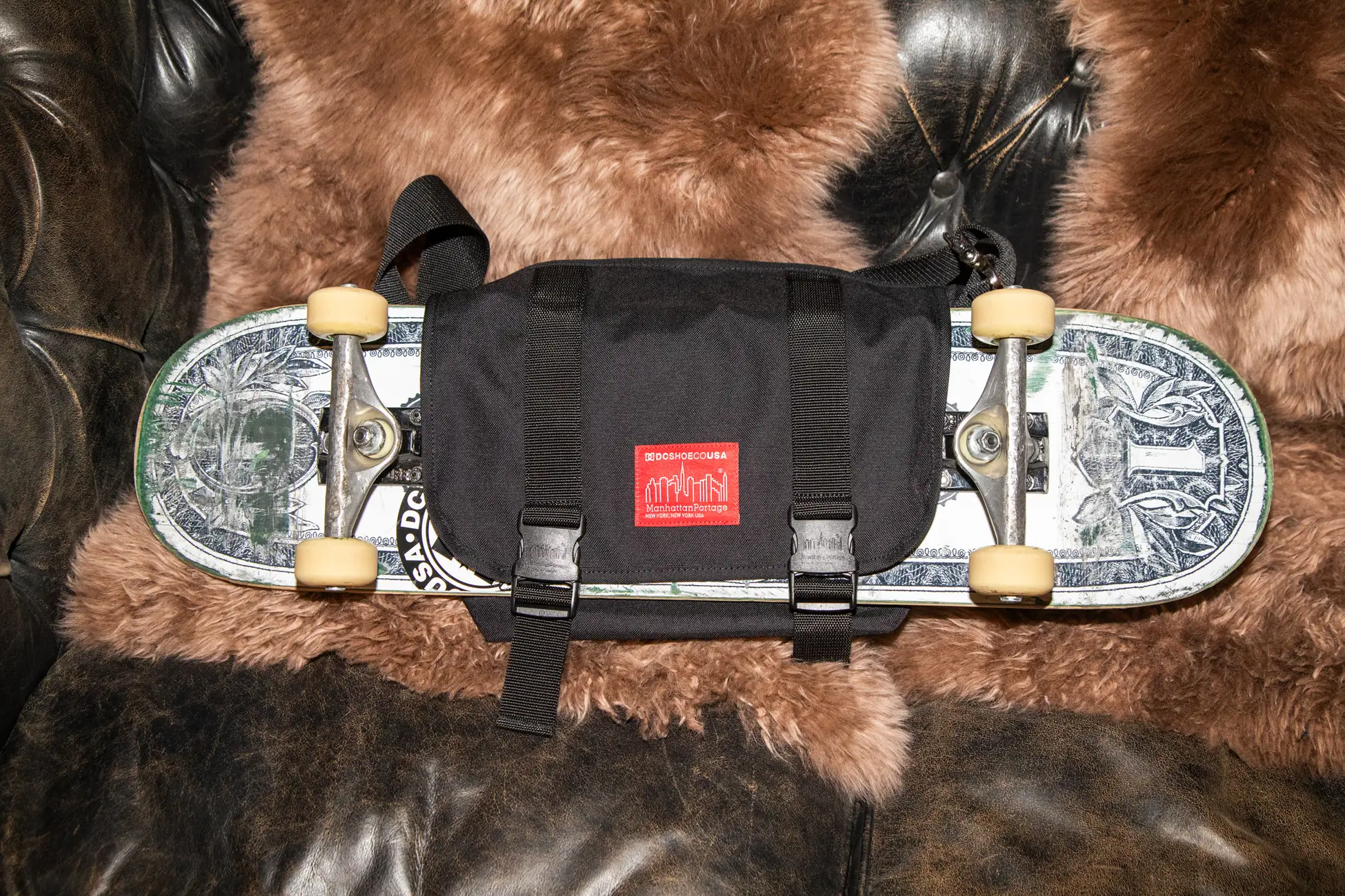 コラボレーションアイテムには、スケートバッグを象徴する大型ストラップをアイコンとして採用。バッグ本体には、DC ShoesとManhattan Portageのブランド名が入ったコラボレーションラベルをフロントに配置した特別仕様です。