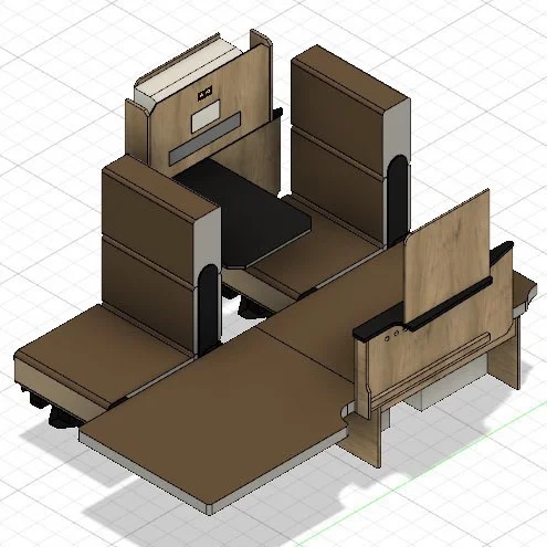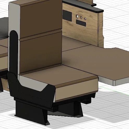 車内は一人掛けのシート(500iseat)が前後に2列と、その左側には横座りのシートを設置。一人掛けシートは前向き・後ろ向きどちらにも展開可能で、シートをフラットに倒すとベッドとして使うこともできます。
