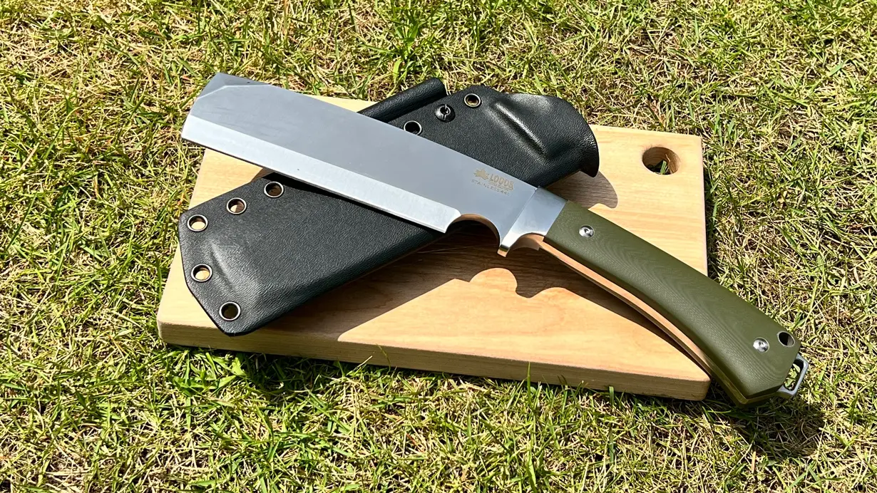 たき火用の薪割りはもちろん、ブッシュクラフトなどの細かい作業や料理など、アウトドアシーンで幅広く活用できる。LOGOSのフルオーダーメイドで実用性をとことん追求した、こだわりの1本。