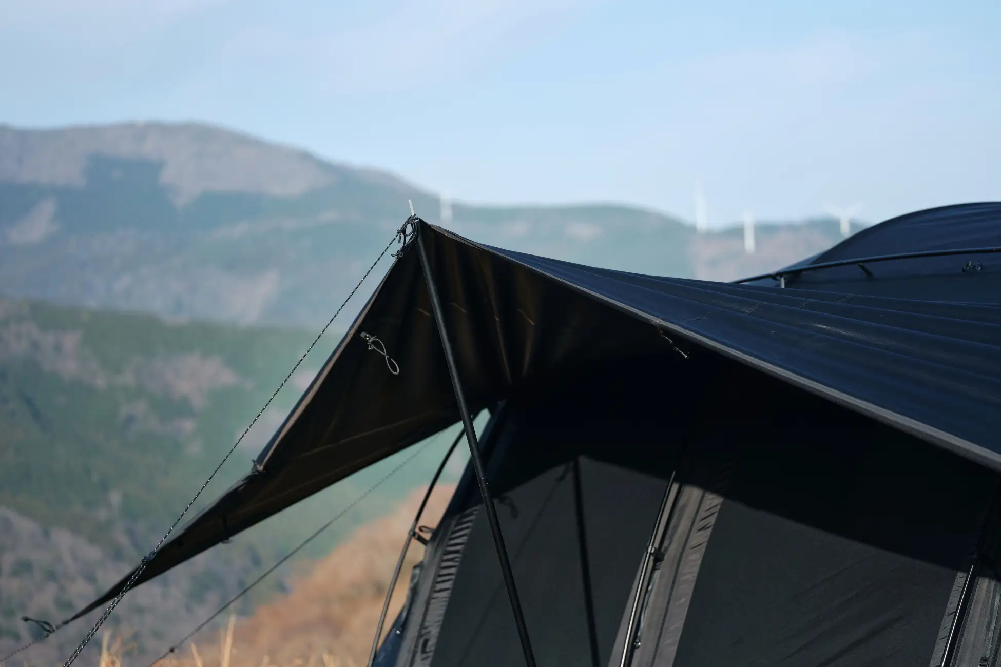 前面を跳ね上げた状態のまま、シェルターの窓をすべてフルクローズ可能。就寝時にキャノピーを片付ける必要がなく、快適性と利便性を高い次元で両立しています。