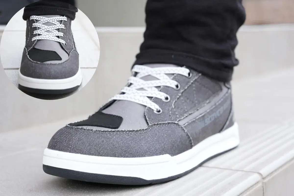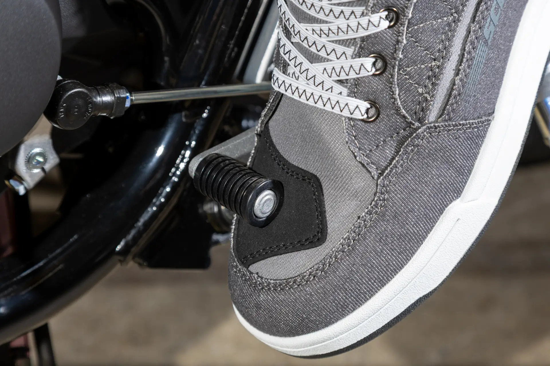 ライディングシューズには欠かせないシフトパッドは左右共に装備することで“いかにもバイク用”といったテイストを極力廃し、街歩きでも悪目立ちすることなく、どんなシーンにも馴染みます。