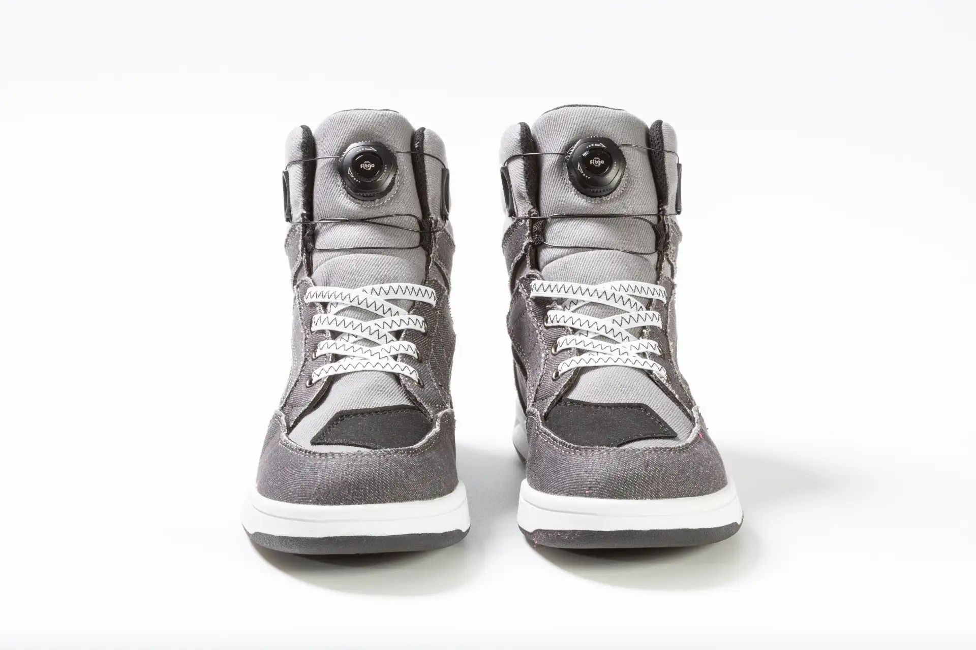 さらに、ハイカットのスタイルとダイヤル式シューレースの採用により、衝撃を受けた際に靴が脱げるのを防ぎ、安全性を高めています。