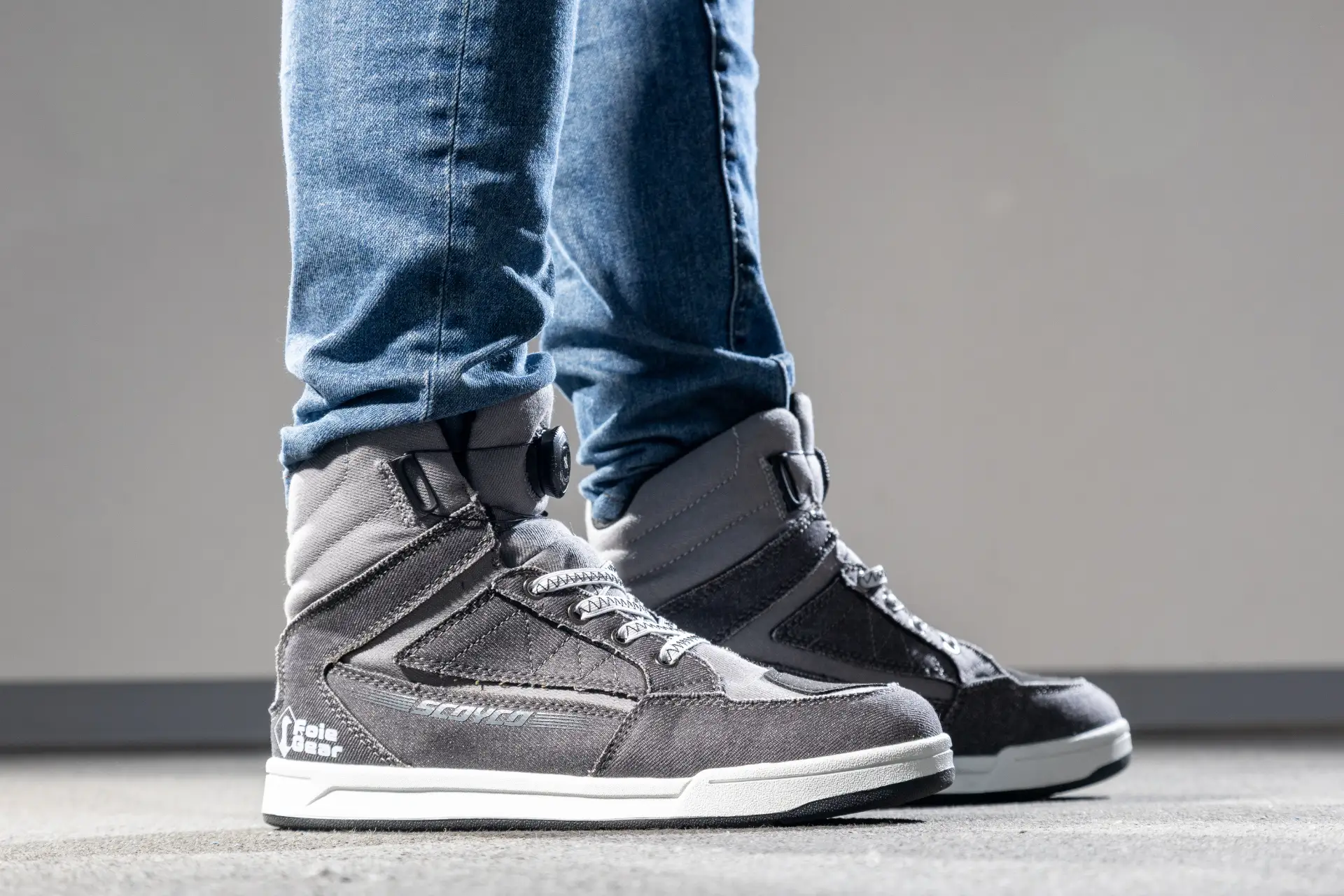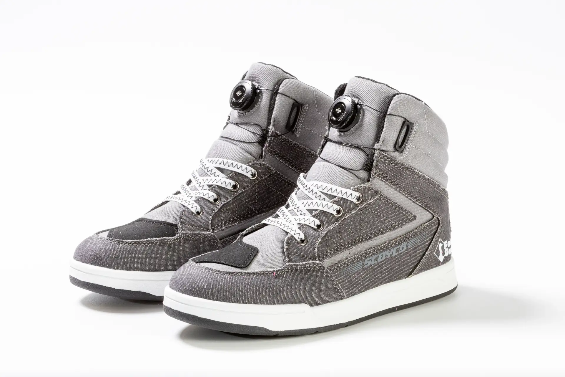SCOYCOラインナップの中、最高レベルのプロテクション性能、耐水圧10,000mmの防水性、ダイヤルと紐のハイブリッド仕様のシューレース、日本人の足型に合ったジャパンフィットなどライディングシューズに求められる機能をハイレベルで満たしたSCOYCO×FoieGearコラボレーションモデルMT107WP。