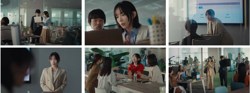 本CMでは、カルチャーマッチした若手社員が活き活きと働く姿と、それを見守る先輩社員たちが彼女を語る様子で構成された「モキュメンタリー(ドキュメンタリー風フィクション)」の手法を採用。演技とは思えないリアルな職場の空気感を描き出しました。