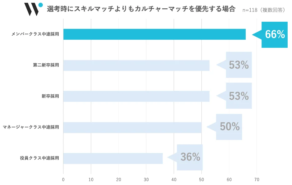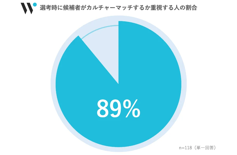 企業側においても、採用担当者の実に89%が選考時に重視しており、特にメンバークラスの中途採用においてはスキルよりも優先する傾向にあることが分かっています。