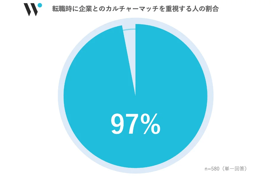 今回のCMストーリーの背景には、現代の採用における意識の変化があります。当社実施の「企業カルチャーに関する調査*」によると、求職者の97%が転職活動時に「カルチャーマッチ」を重視すると回答。さらに、78%が条件面よりも「カルチャーマッチ」を優先する意向を示しています。