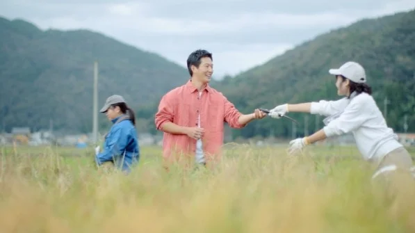 そして場面は、黄金色の稲穂が揺れる豊岡市の田んぼへと移り変わります。工藤さんは実際に現地を訪問し、地元農家や子どもたちとともに、コウノトリ育む農法で育てたお米の収穫に汗を流します。現地で作られたお米を使ったおにぎりをみんなで食べたり、地元農家の人たちと語り合ったりする中で、農業を応援する輪が着実に広がっていることを実感した工藤さんは、カメラに向かって 「一緒にやろうよ!」 と力強く呼びかけます。