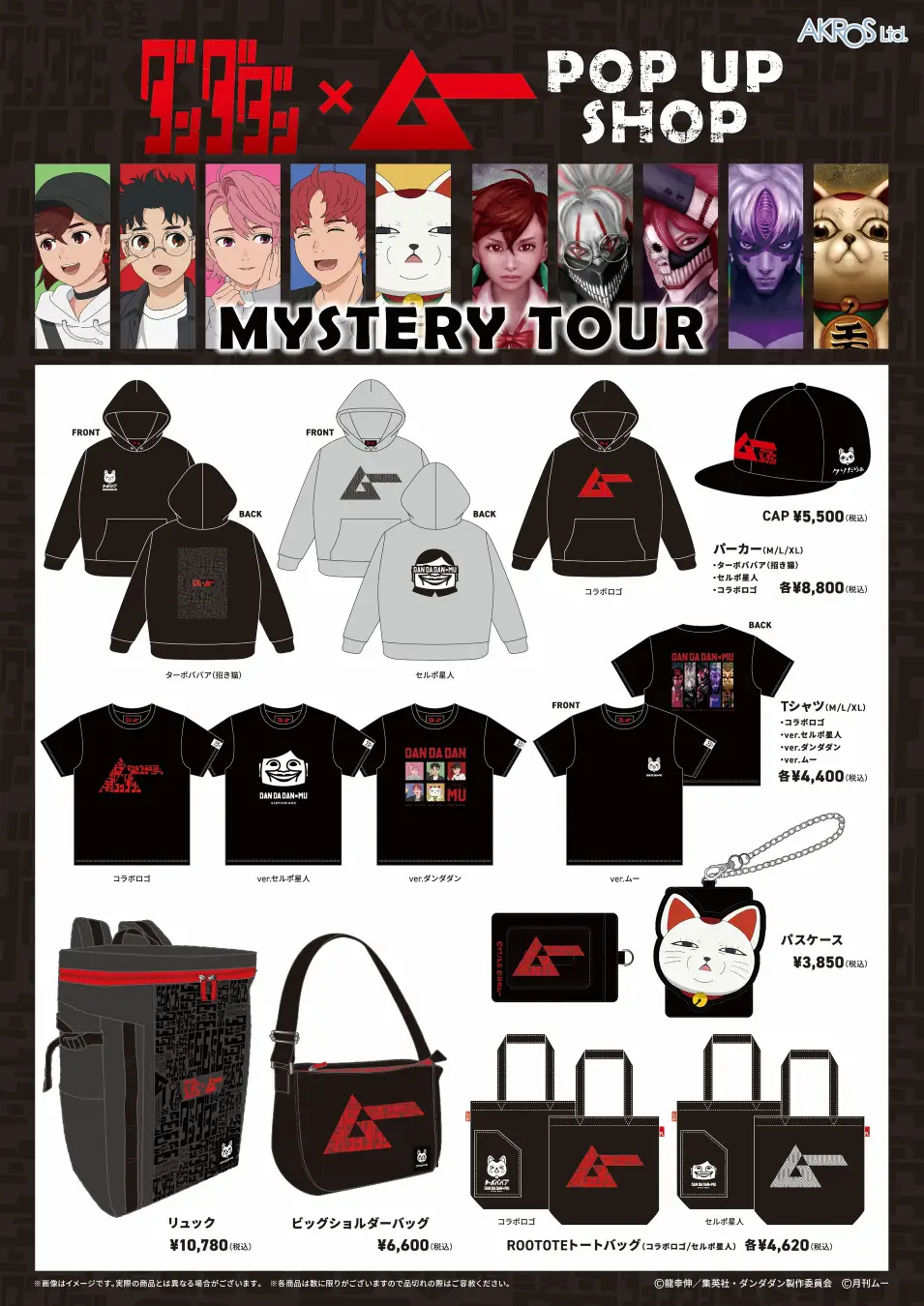 株式会社ワン・パブリッシング(東京都港区/取締役社長:松井謙介)が刊行するスーパーミステリー・マガジン「ムー」と、オカルティックバトルアニメ『ダンダダン』とのコラボレーショングッズが発売となります。そちらの商品が一堂に揃うPOP UP SHOP(運営・グッズ制作 有限会社アクロス)が、2026年1月10日に渋谷モディにオープンする予定です。その後、2月に名古屋、3月に大阪へと巡回します。