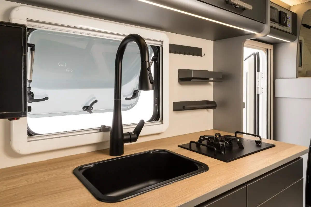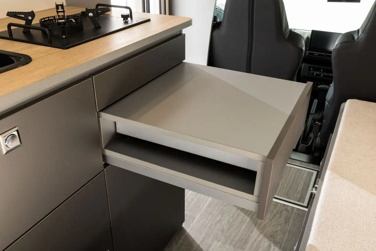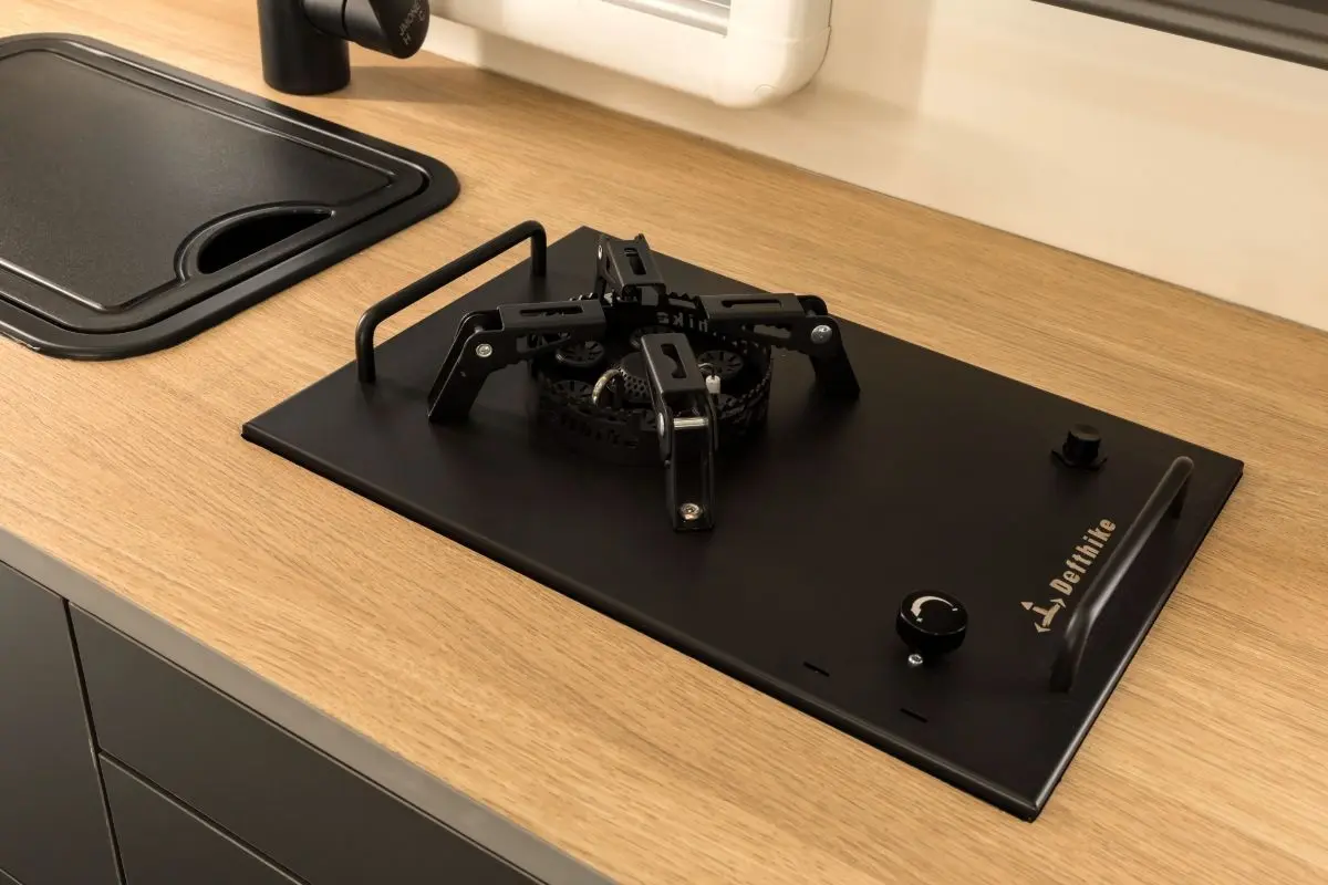 キッチンには取り外し可能なコンロユニットを搭載。