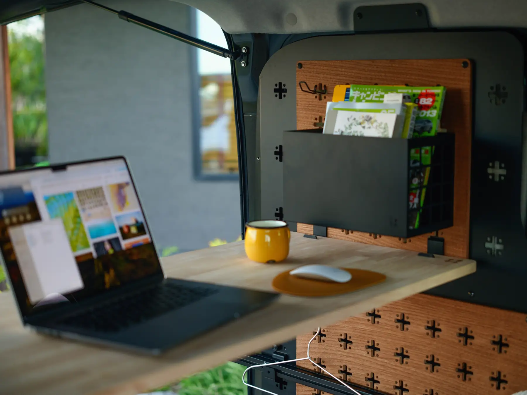 完成形を押し付けない「余白」の設計で、仕事・趣味・日常を 1 台で支える車載収納システム。