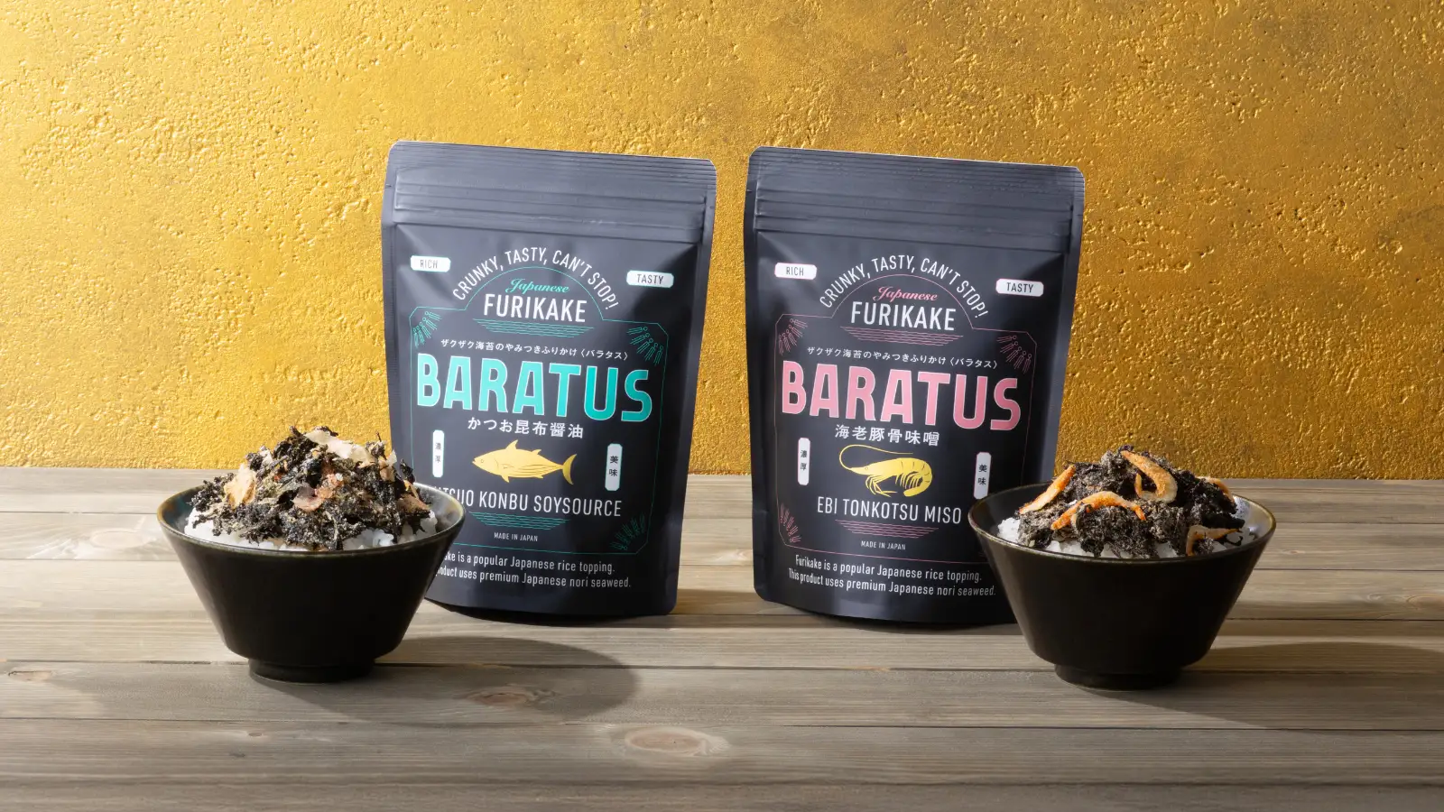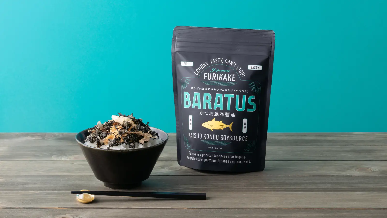BARATUSは、最高ランクのばらのりと贅沢素材を使いながら、家庭のテーブルにも、旅先の ギフトにも使いやすいスタンドパックタイプのアルミ袋仕様。日本のふりかけ文化と、その背景にある「不足を補う知恵」を、世界に向けて紹介できるひと袋です。