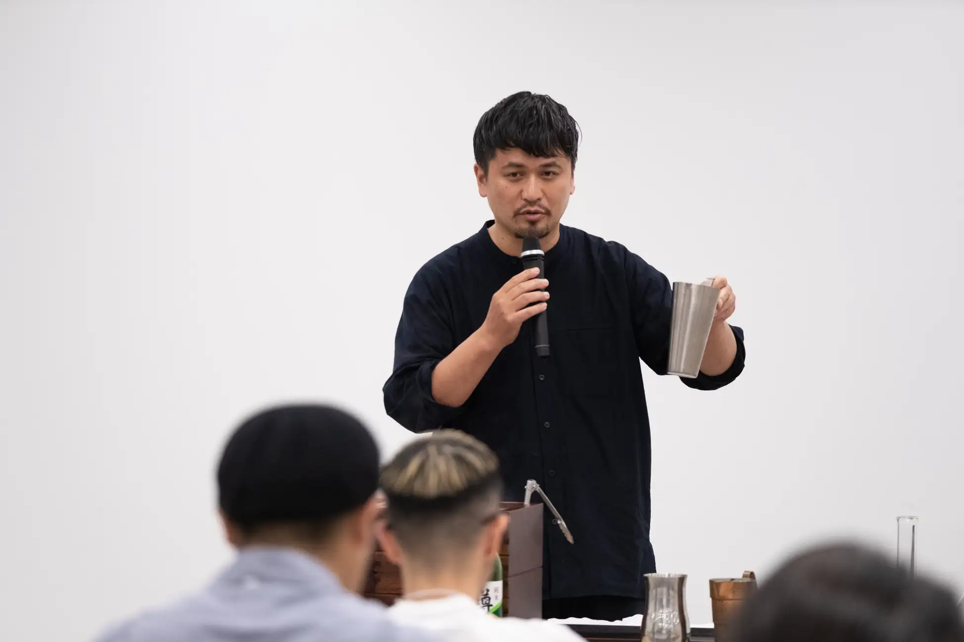 本格焼酎の本場 宮崎で飲食店「國酒 松」を営む小松山 龍辰(こまつやま・りゅうしん)氏の解説で、温度や割り方による香りや味わいの変化を体験していただきました。