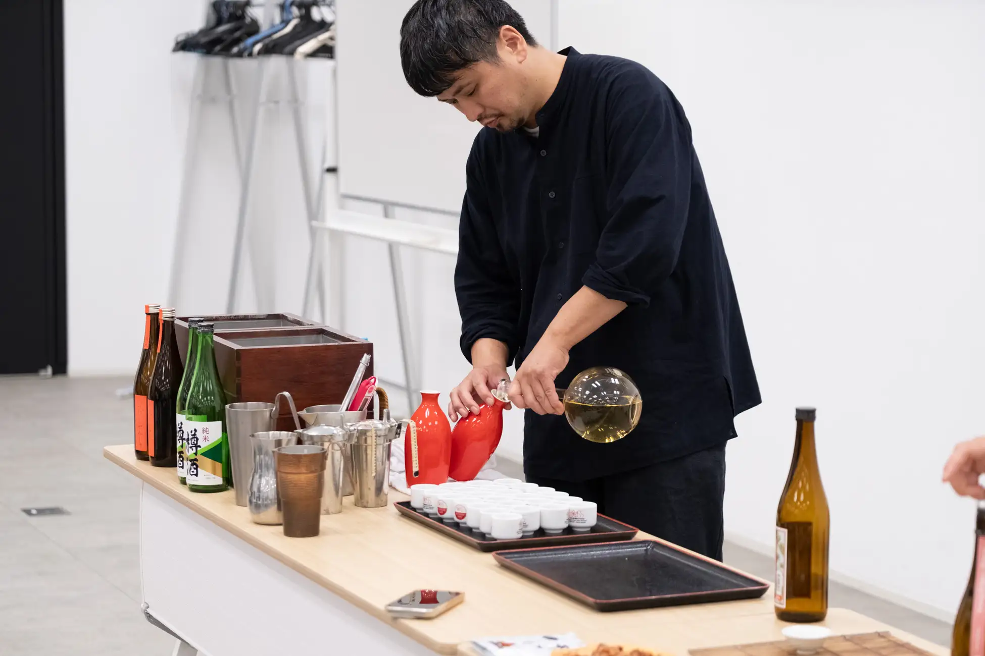ワークショップは、燗酒ペアリングで有名な飲食店「高崎のおかん」店主の髙崎 丈(たかさき・じょう)氏を講師に迎え、同じ日本酒を複数の温度帯や酒器で提供し、温度や酒器などの条件の違いが、味わいにどのような変化をもたらすのかを、参加者に体験していただきました。