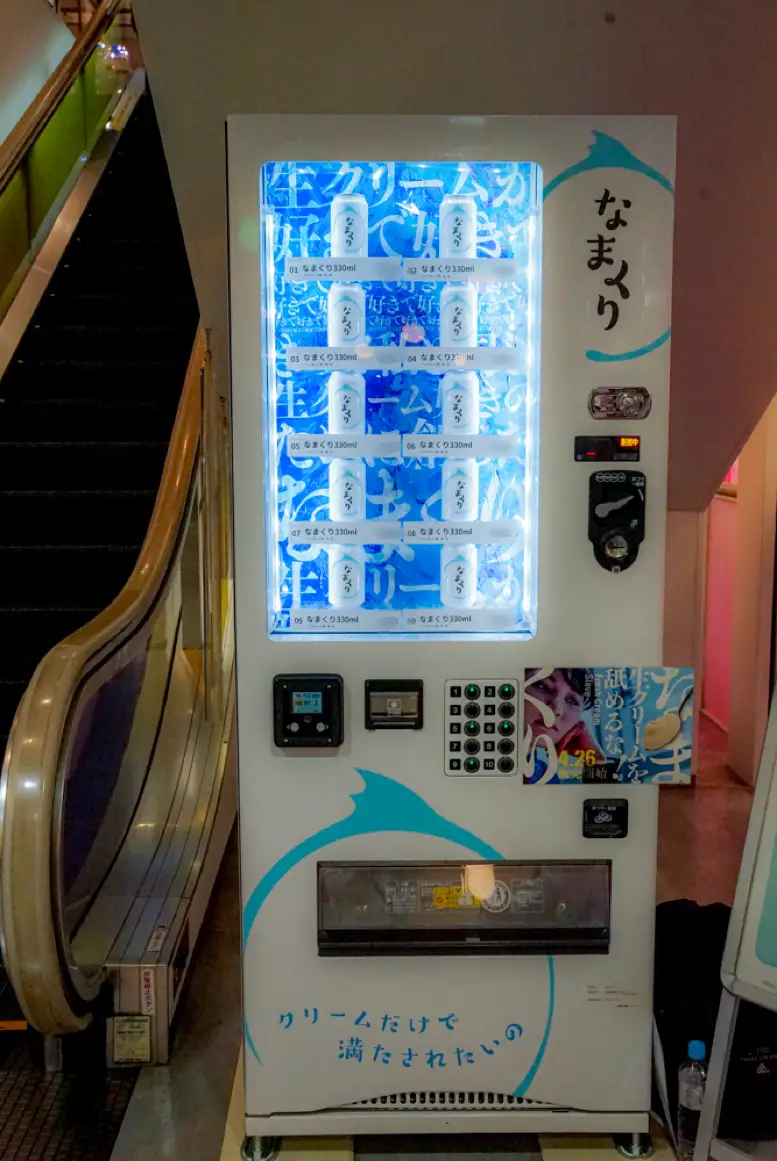 9割が特製クリームでできた奇想天外スイーツ缶『なまくり』。生クリーム好きにはたまらないと既にSHIBUYA109渋谷店等で人気爆発中!2022年の発売開始から1年を待たずに累計販売数10万缶を突破。口に入れると舌でとろけて、濃厚なのにぺろりと完食してしまう逸品は、SNSやTVでも好評。味だけではなく、クリームだけで埋め尽くされた真っ白な缶のビジュアルは、SNS戦国時代の若者を中心に大ヒット。近年の流行である自販機型販売という発売形態もブランドの魅力の一つである。