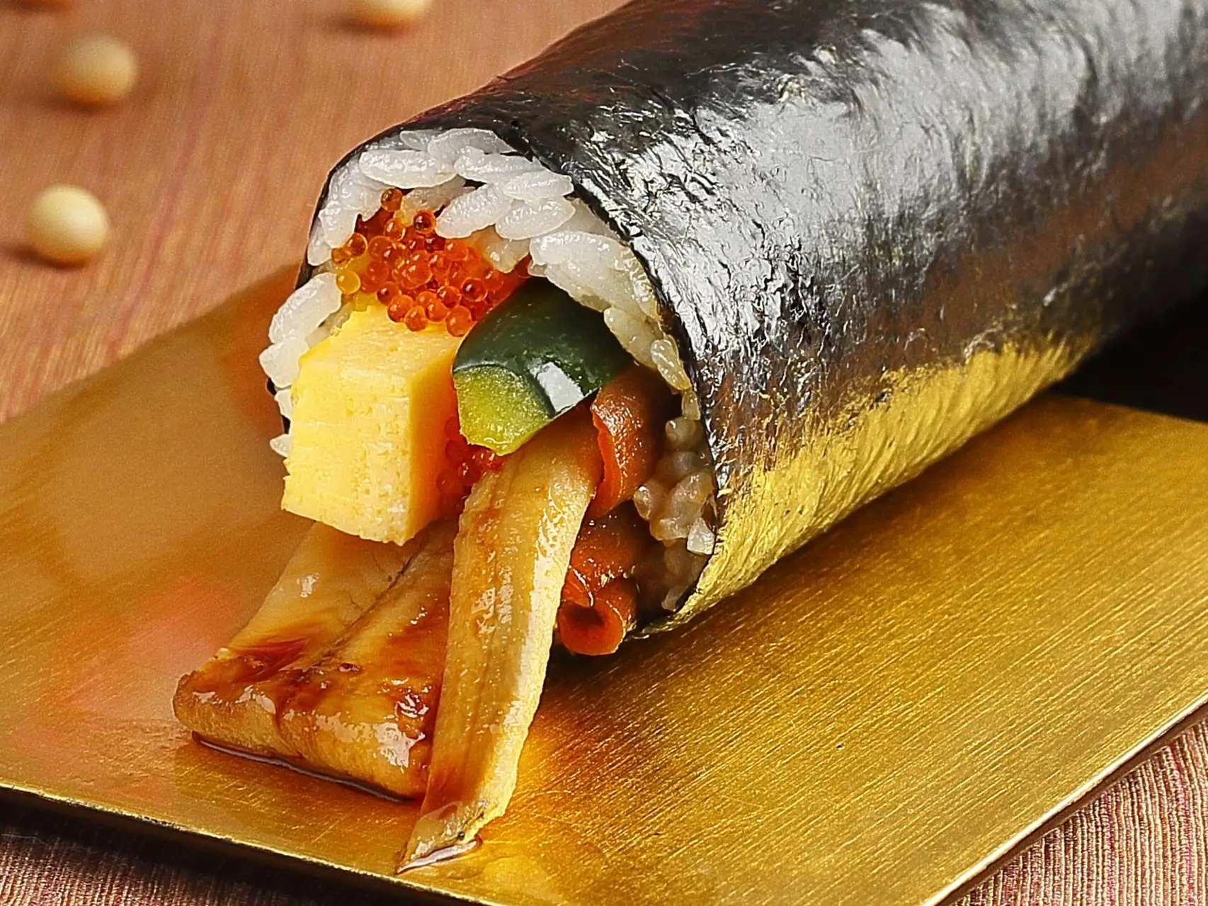 ふっくらとした煮穴子を1本分入れ、丁寧に巻いた贅沢な一品。食材にこだわった「なだ万」ならではの恵方巻をお楽しみください。
