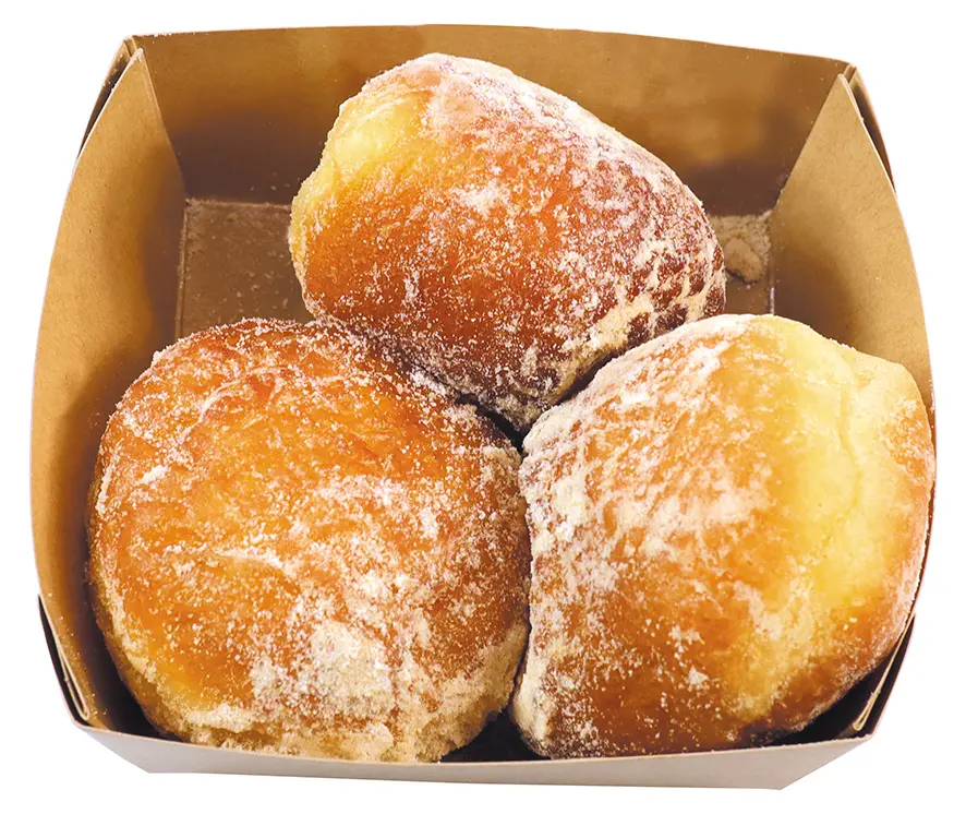 リングドーナツのくりぬかれた真ん中を揚げたふぞろいな形が可愛らしいプチドーナツ(3個入)です。ドーナツにまぶした国産きな粉の香ばしい風味と自然な甘みを楽しめます。