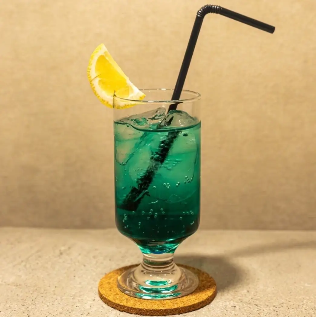 猫奈落をイメージしたクラフトコーラです。数種のスパイスと柑橘を煮出した自家製コーラを、満月を模した輪切りレモンを添えてご提供。